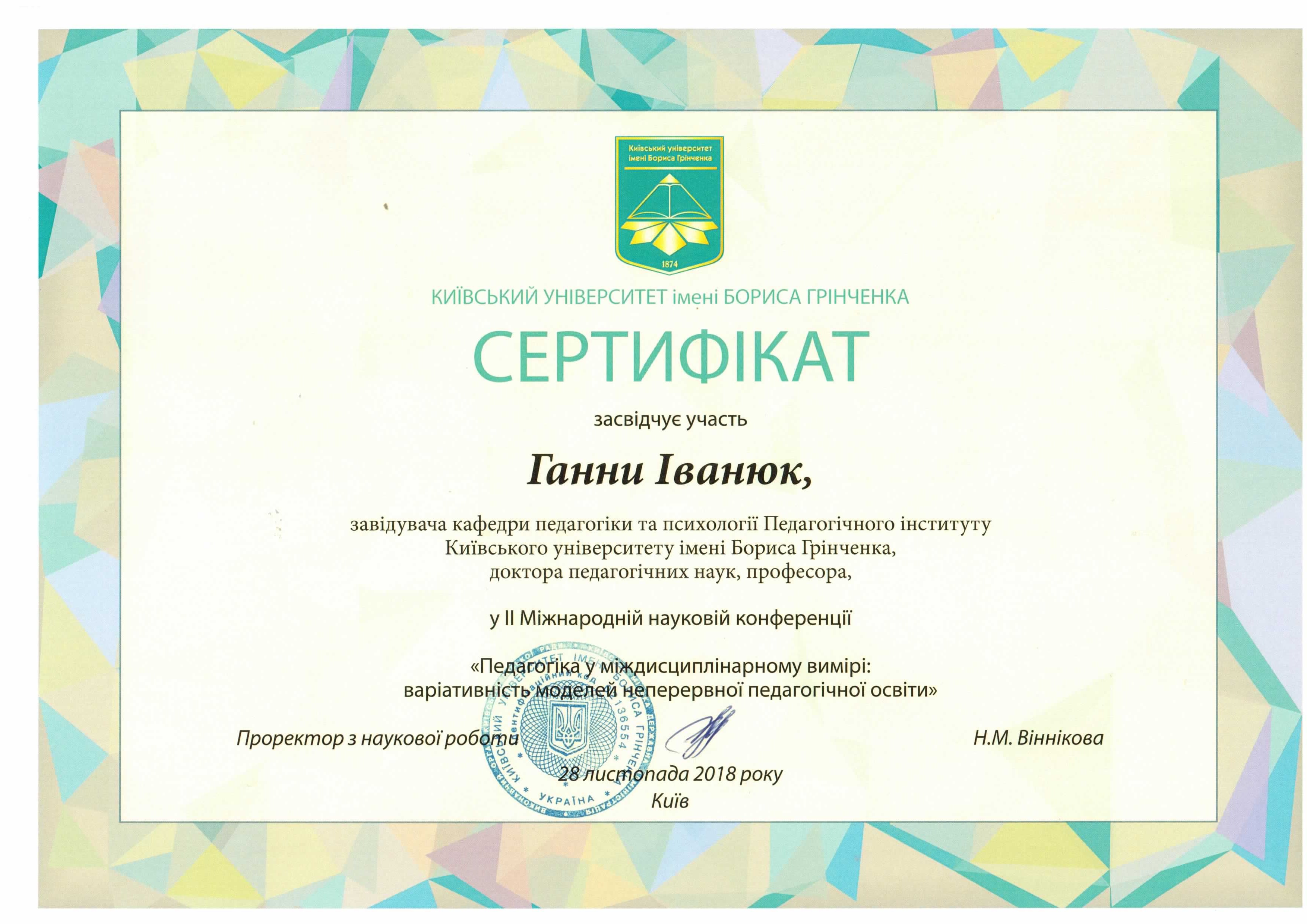 | 4596 | ІІ Міжнародна науково-практична конференція "Сучасні стратегії педагогічної освіти в контексті розбудови суспільства сталого розвитку та євроінтеграції" | Антропологічний концепт педагогічної освіти: глобальний, європейський та національний виміри | Київський університет імені Бориса Грінченка |