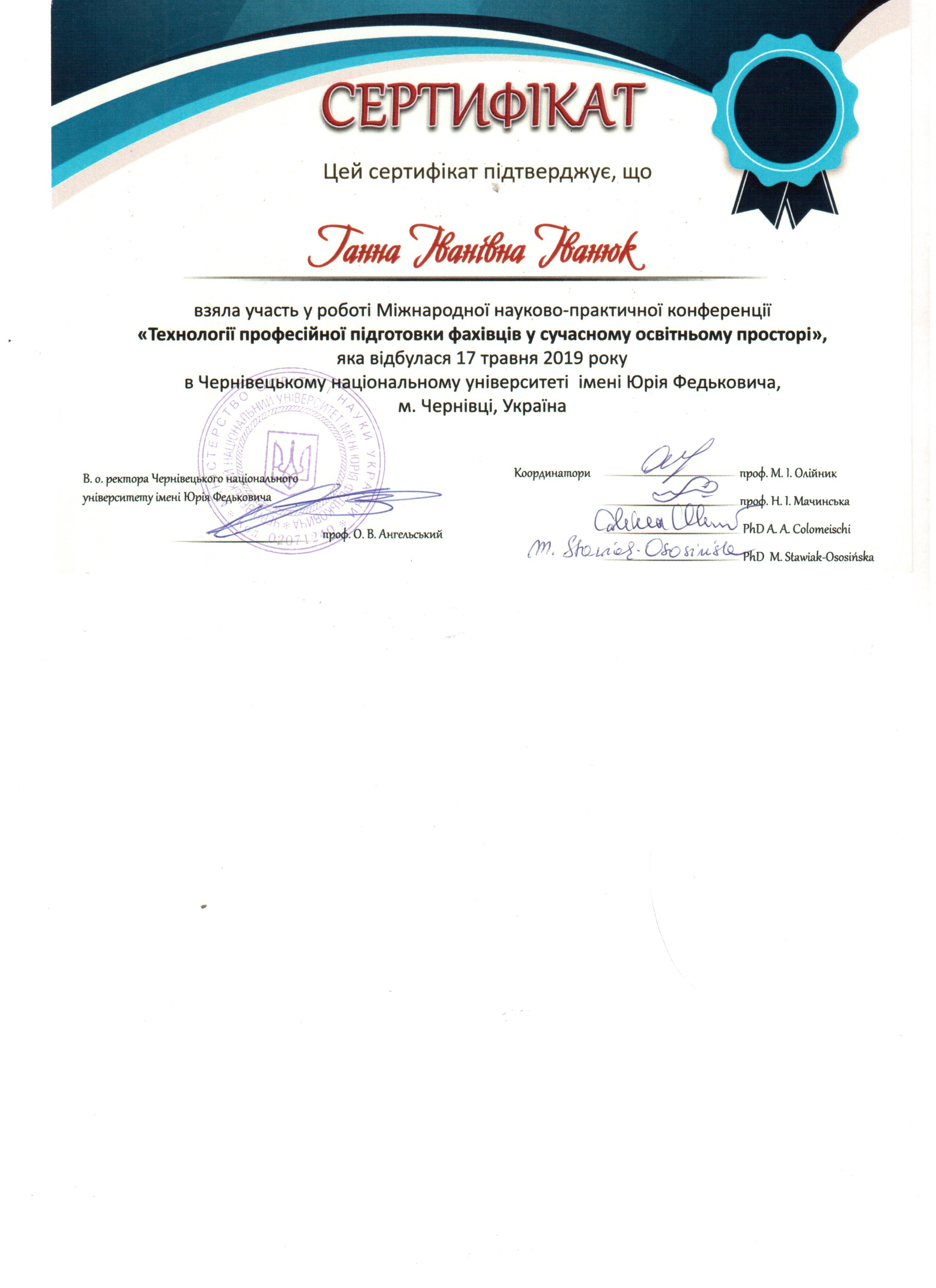 | 4290 | Міжнародна науково-практична конференція "Технології професійної підготовки фахівців у сучасному освітньому просторі" | Інновації у підготовці педагогів: виклики і тенденції | м. Чернівці |