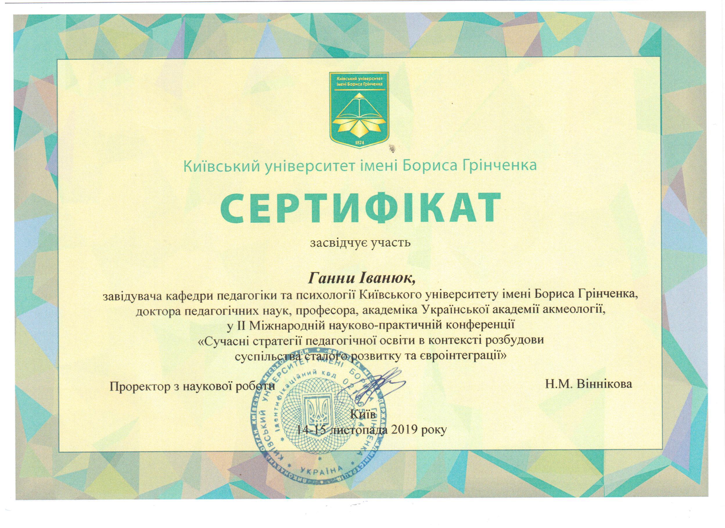 | 1976 | Міжнародна науково-практична конференція "Сучасні стратегії педагогічної освіти в контексті розбудови суспільства сталого розвитку та концепції нової української школи" | Нова стратегія професійно-педагогічної освіти: євроінтеграційний вимір | Київський університет імені Бориса Грінченка |