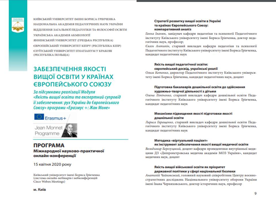 | 5254 | Міжнародна науково-практична онлайн-конференція "Забезпечення якості вищої освіти у країнах Європейського Союзу" | Стратегії розвитку вищої освіти в Україні та країнах Європейського Союзу: компаративний аналіз | Київський університет імені Бориса Грінченка |