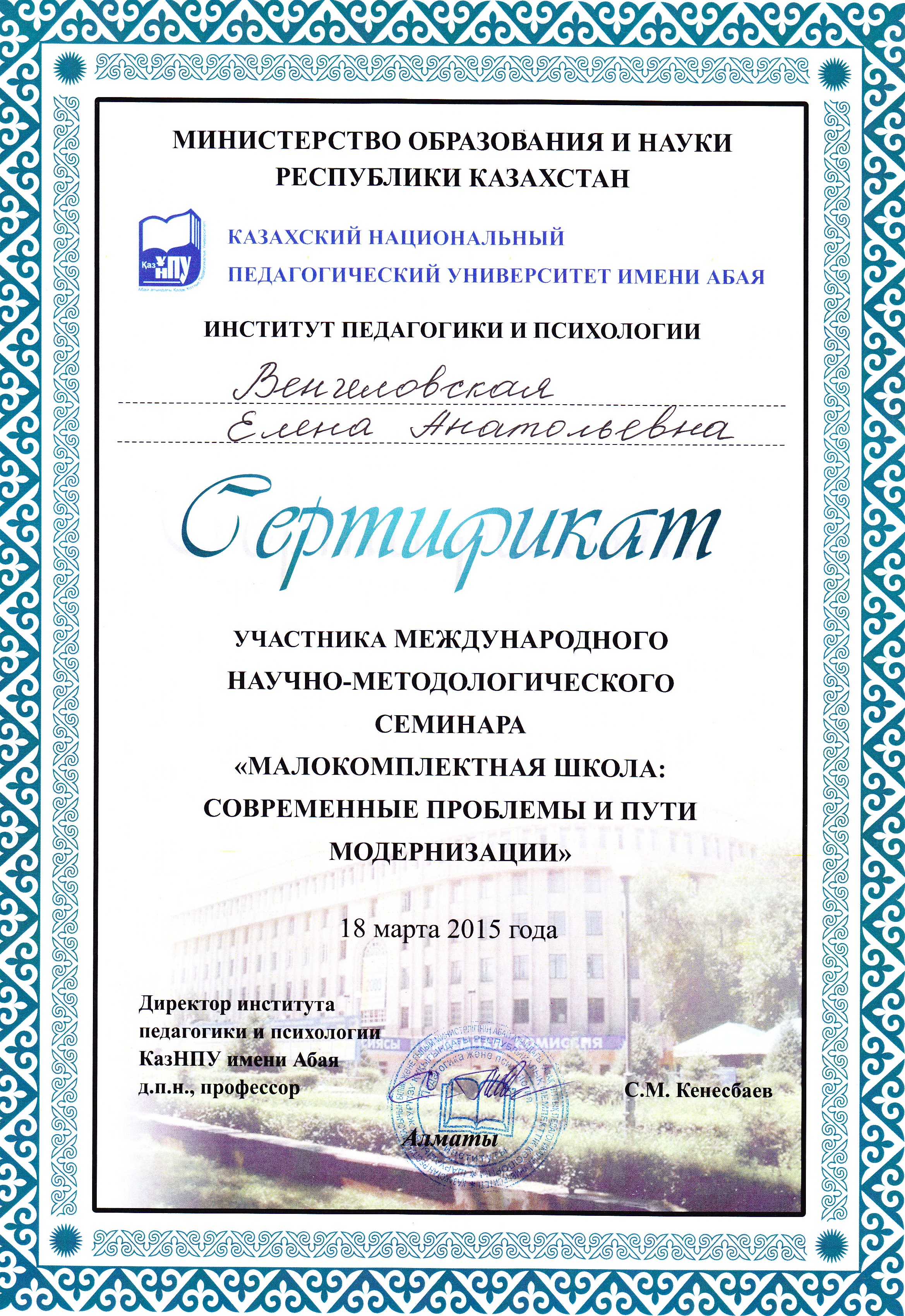 | 103 | Малокомплектная школа: современные проблемы и пути модернизации | Особенности развития малокомплектных школ в Киевской области | Казахский национальный педагогический университет имени Абая |