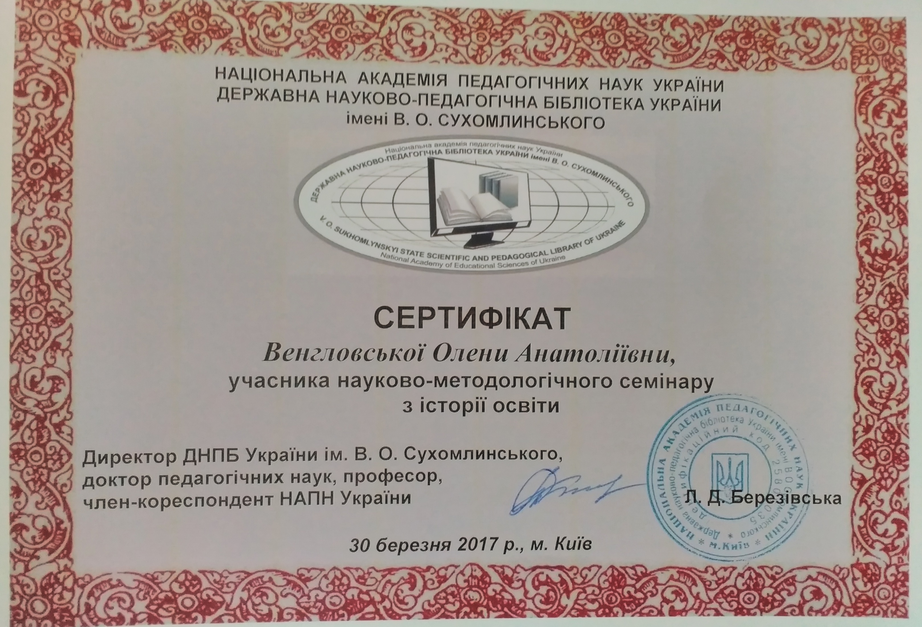 | 1893 | Науково-методологічний семінар з історії освіти \ | Історико-педагогічні дослідження в освітніх програмах другого (магістерського рівня) підготовки фахівців із педагогічної освіти | Державна науково-педагогічна бібліотека України імені В.О. Сухомлинського |