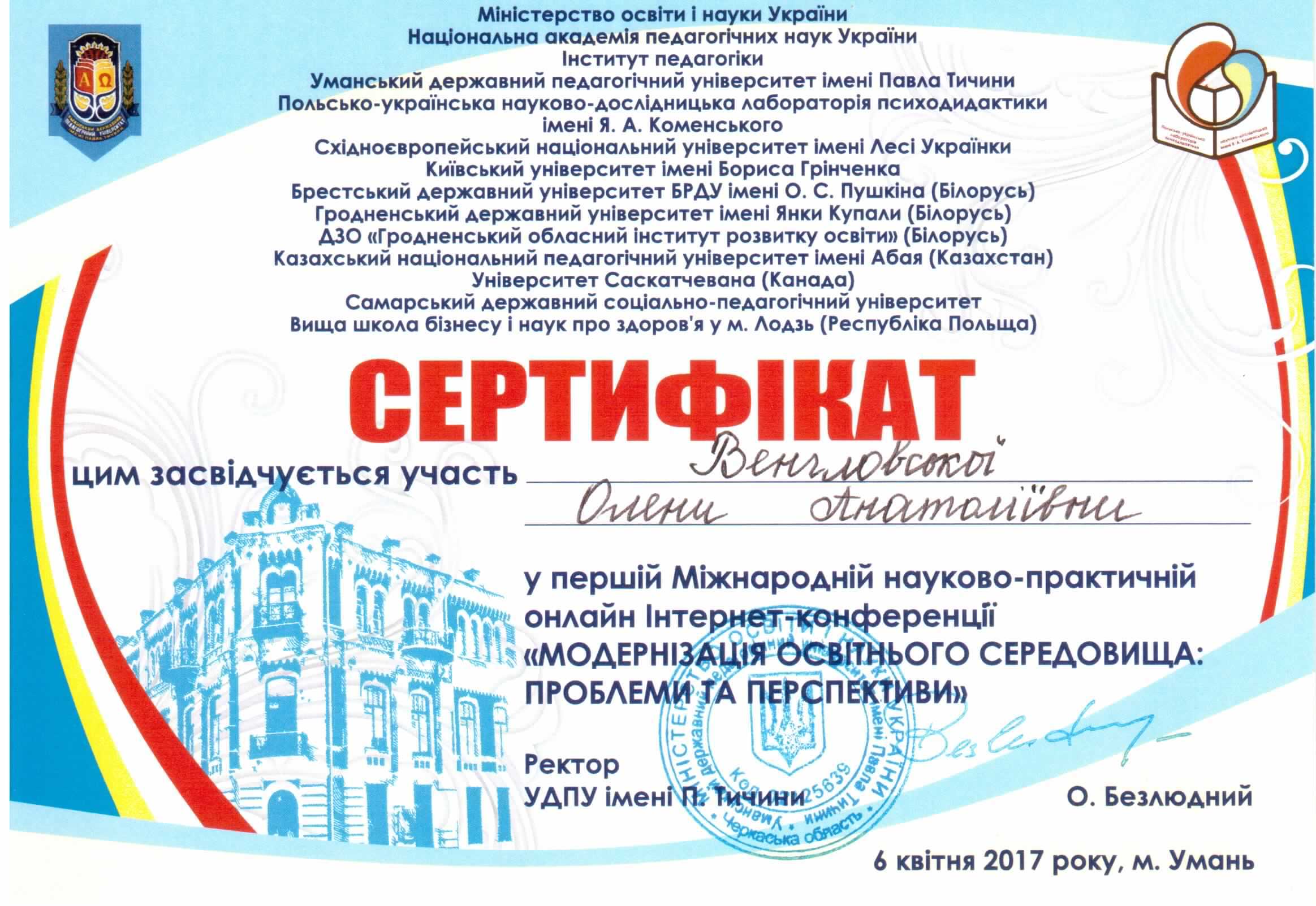 | 1647 | Модернізація освітнього середовища: проблеми та перспективи | Особистісно-професійний розвиток майбутнього фахівця засобами пошукової діяльності | Уманський державний педагогічний університет імені Павла Тичини |