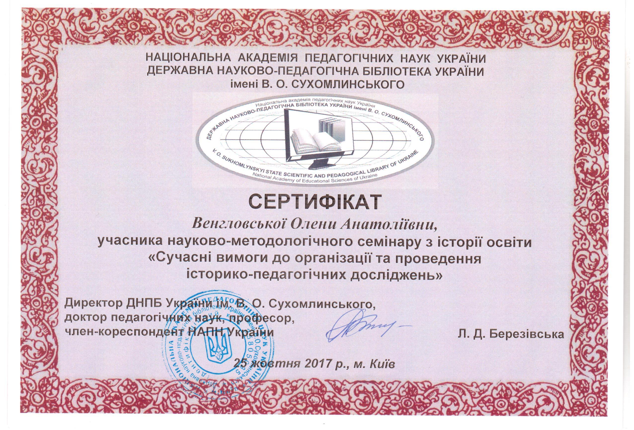 | 1565 | Науково-методологічний семінар з історії освіти | Сучасні вимоги до організації та проведення історико-педагогічних досліджень | Державна науково-педагогічна бібліотека України імені В.О. Сухомлинського |