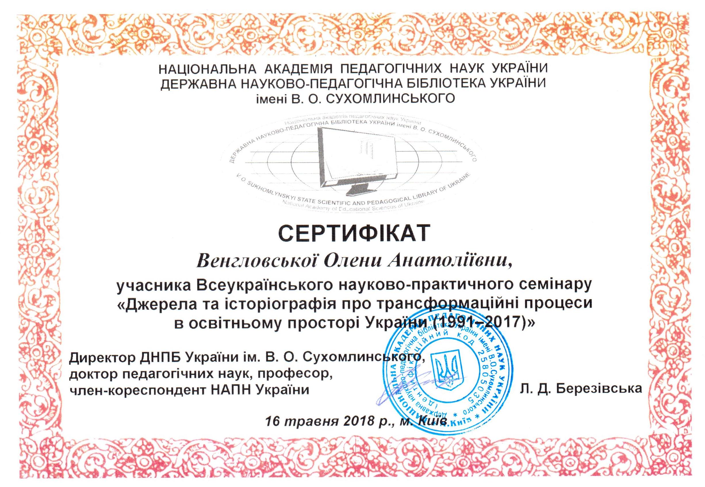 | 3138 | Всеукраїнський науково-практичний семінар "Джерела та історіографія про трансформаційні процеси в освітньому просторі України (1991-2017)" | Регіональні аспекти студіювання розвитку дошкільної освіти в Україні (1991-2017): джерела та історіографія | Державна науково-педагогічна бібліотека України імені В.О. Сухомлинського |