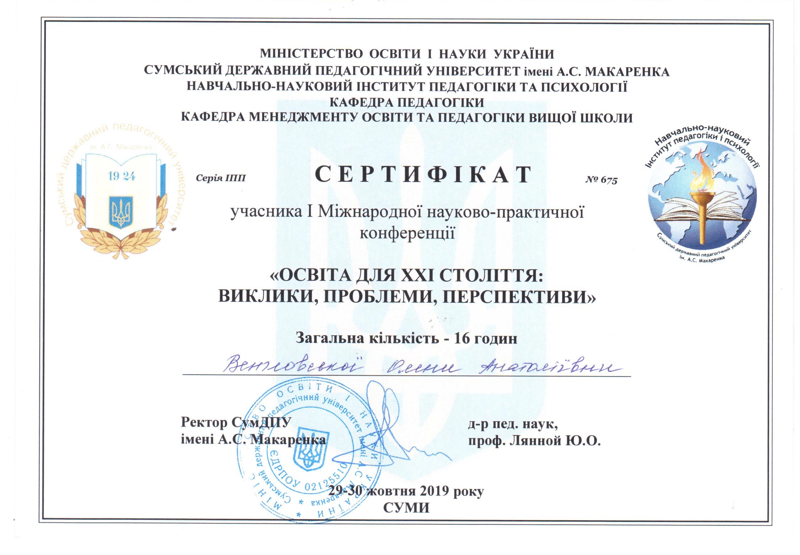 | 4455 | І Міжнародна науково-практична конференція "Освіта ХХІ століття: виклики, проблеми, перспективи" | Технології формування пошуково-дослідницької компетентності майбутніх педагогів | Сумський державний педагогічний університет імені А.С. Макаренка |