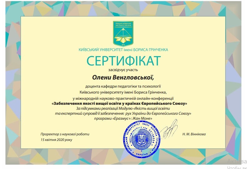 | 5268 | Міжнародна науково-практична онлайн-конференція "Забезпечення якості вищої освіти у країнах Європейського Союзу" | Self-Book особистісно-професійного зростання в підготовці педагога: від ідеї до практики | Київський університет імені Бориса Грінченка |