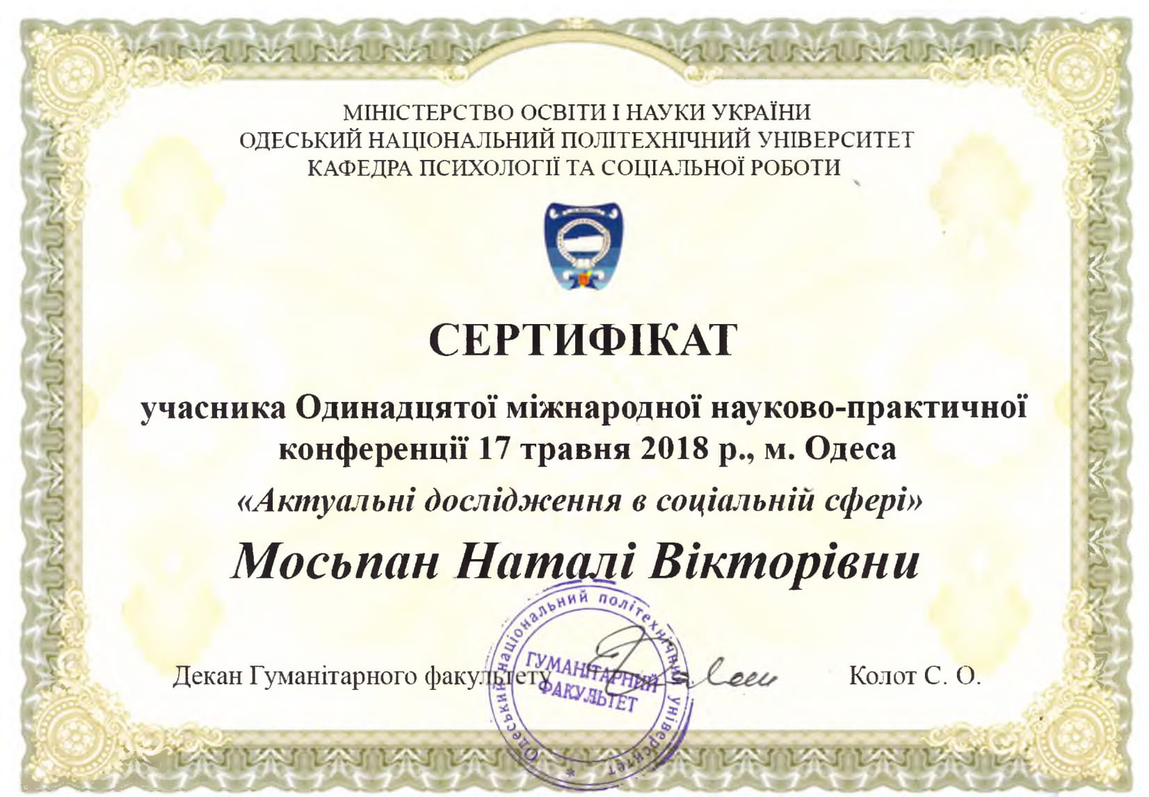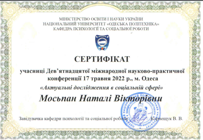| 8036 | Актуальні дослідження в соціальній сфері | Linking Teaching and Research at University | Національний університет "Одеська політехніка" |