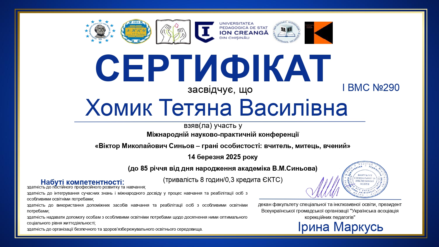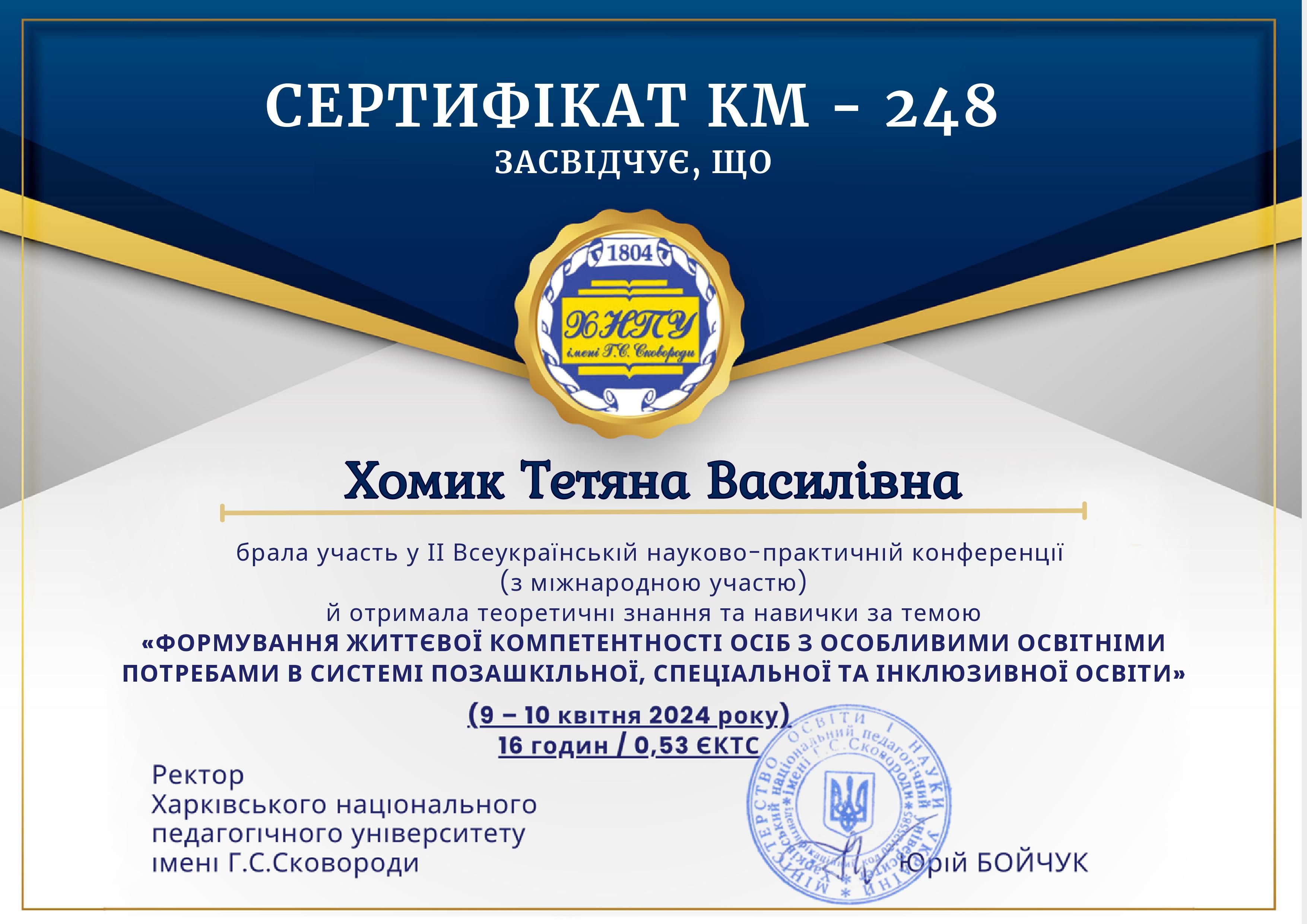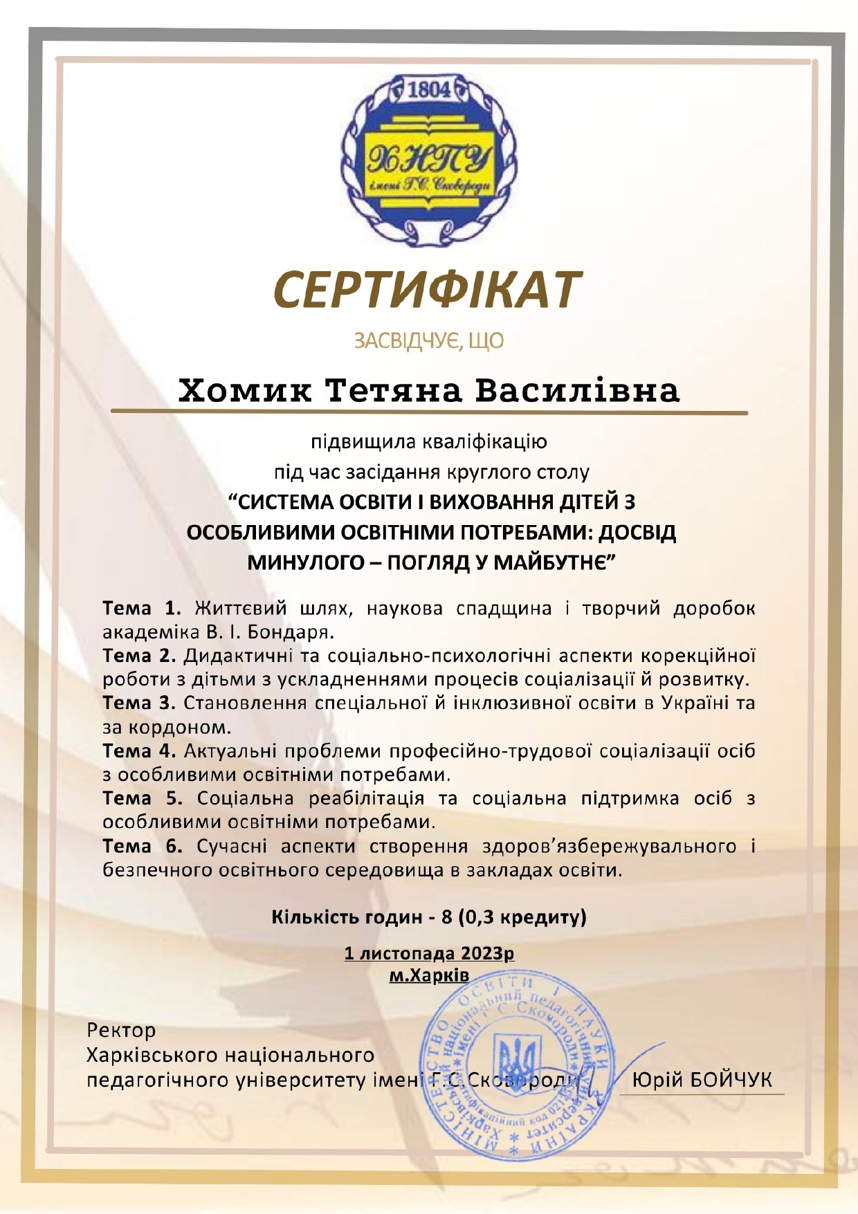 | 8239 | Школа стійкості | Інший модуль | certificate_Хомик_ТВ (1).pdf | 08.08.2023 00:00 |