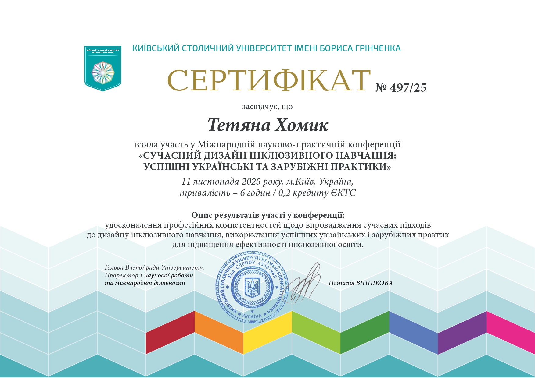 | 192 | Гомон Яна Олександрівна | IV | Актуальні проблеми інклюзивної освіти | I | 2022 |