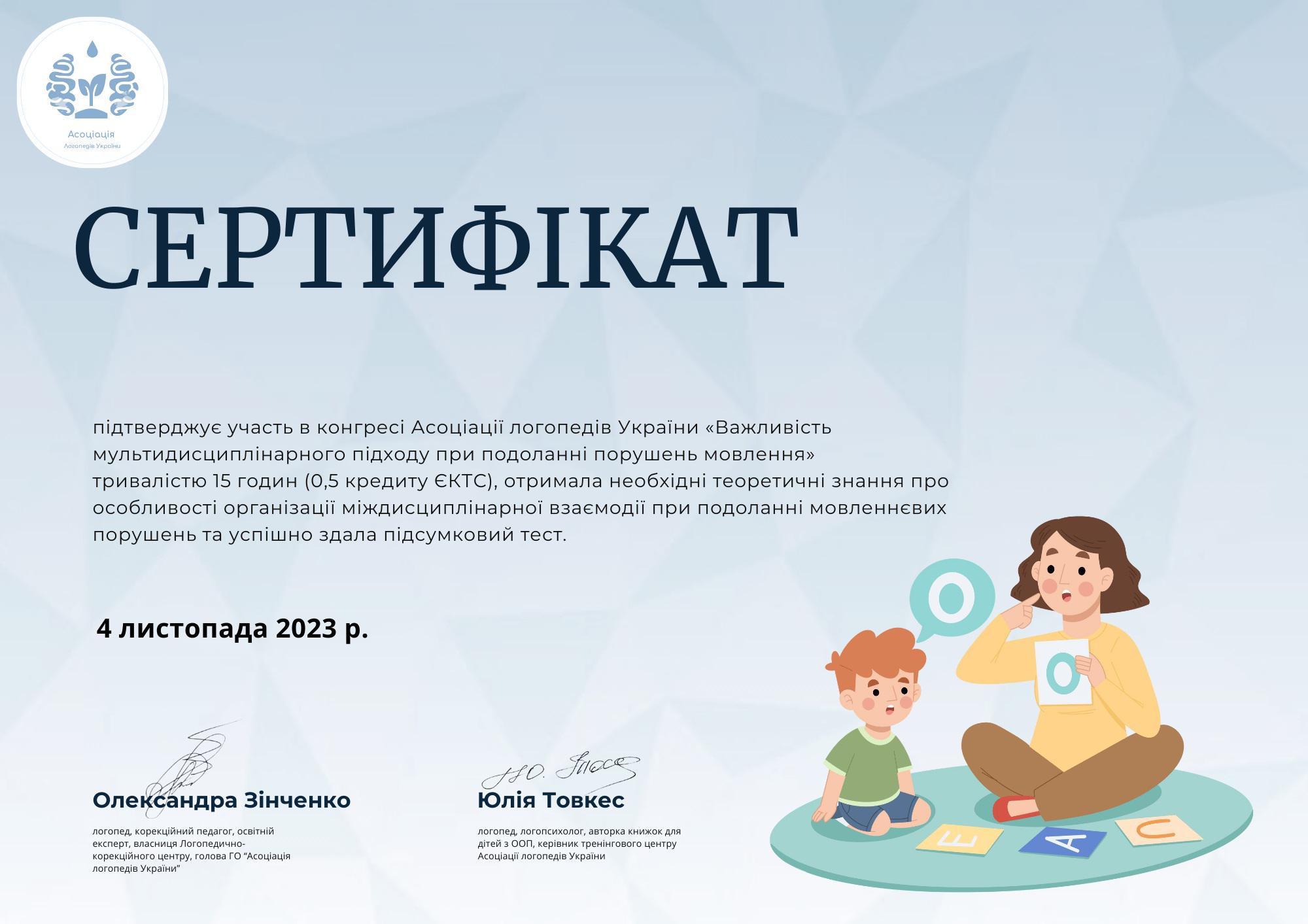 | 8542 | X Міжнародна науково-практична конференція «Analysis of modern ways of development of science and scientific discussions» | Сучасні підходи щодо профілактики порушень письма у молодших школярів з порушеннями мовлення | Більбао, Іспанія |