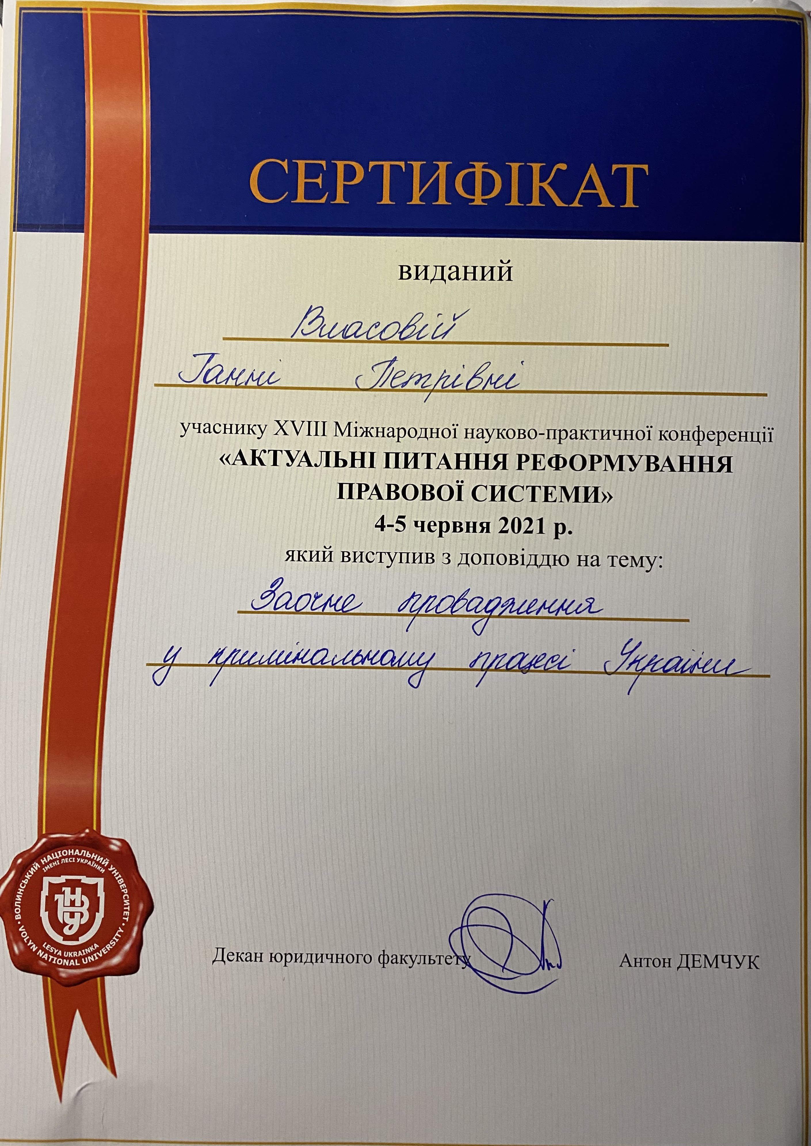 | 7567 | Актуальні питання реформування правової системи | Заочне провадження у кримінальному процесі України | Луцьк |