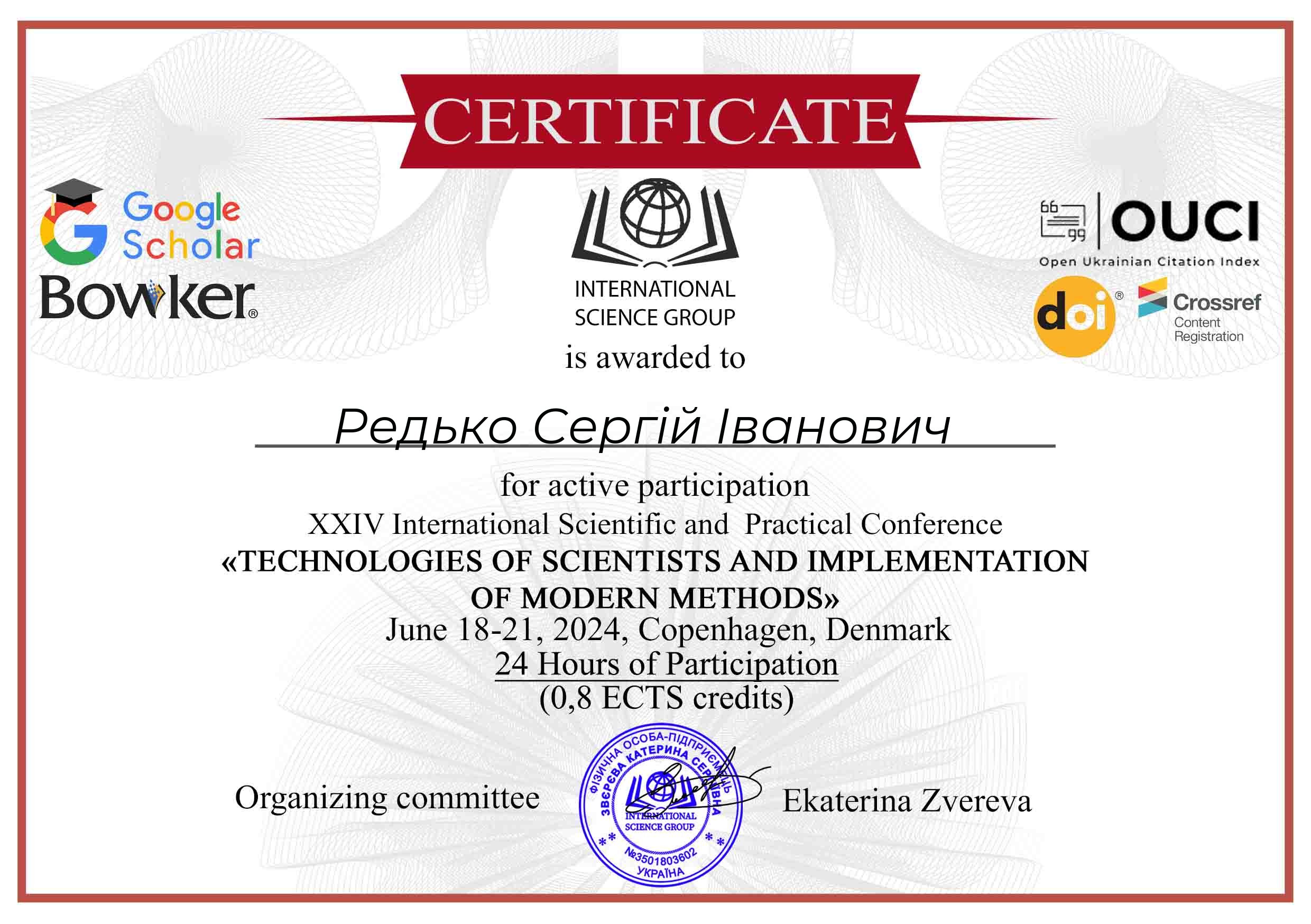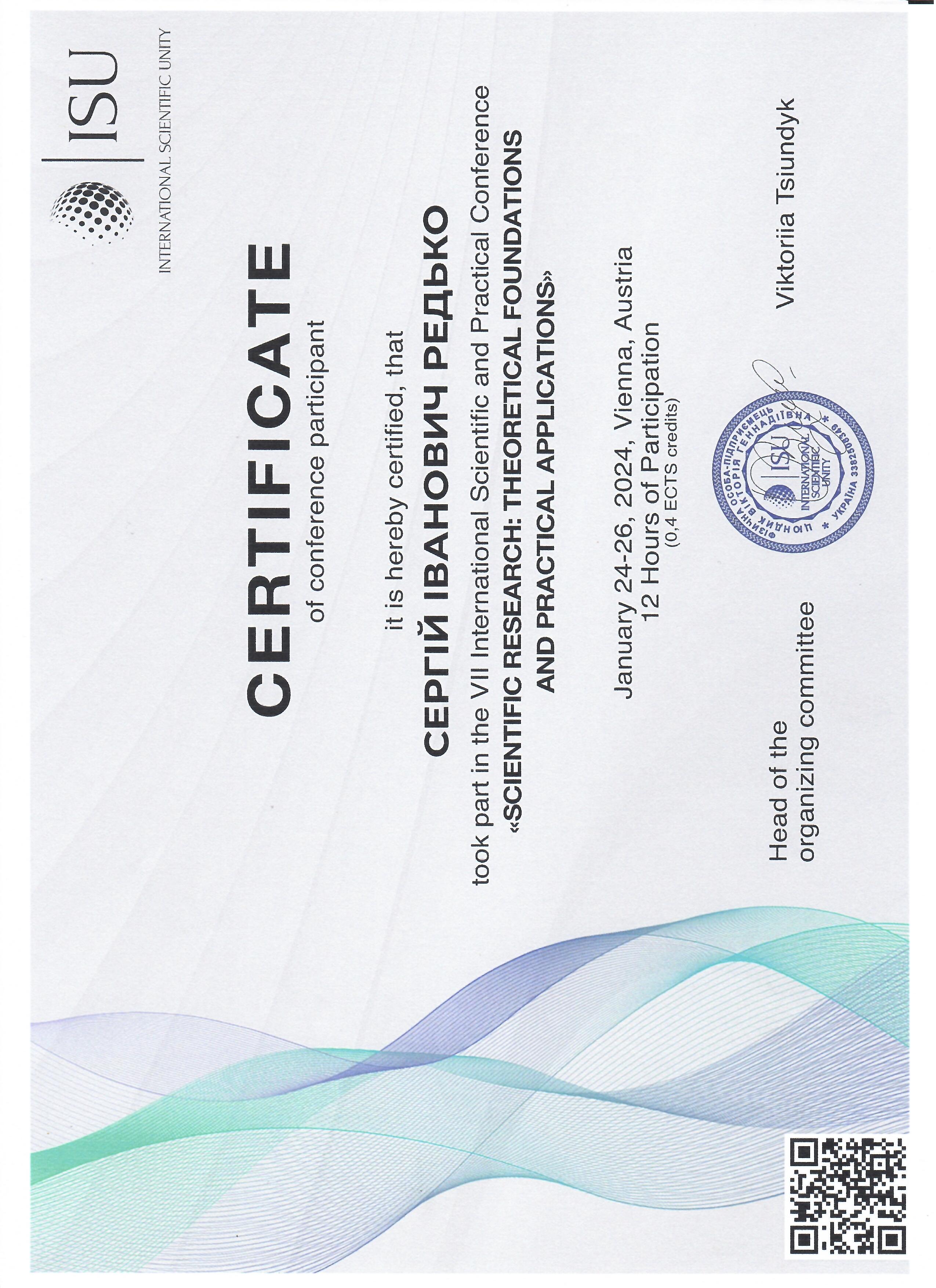 | ID | Назва | Тема доповіді | Місце проведення | Документ, що засвідчує | Дата проведення |