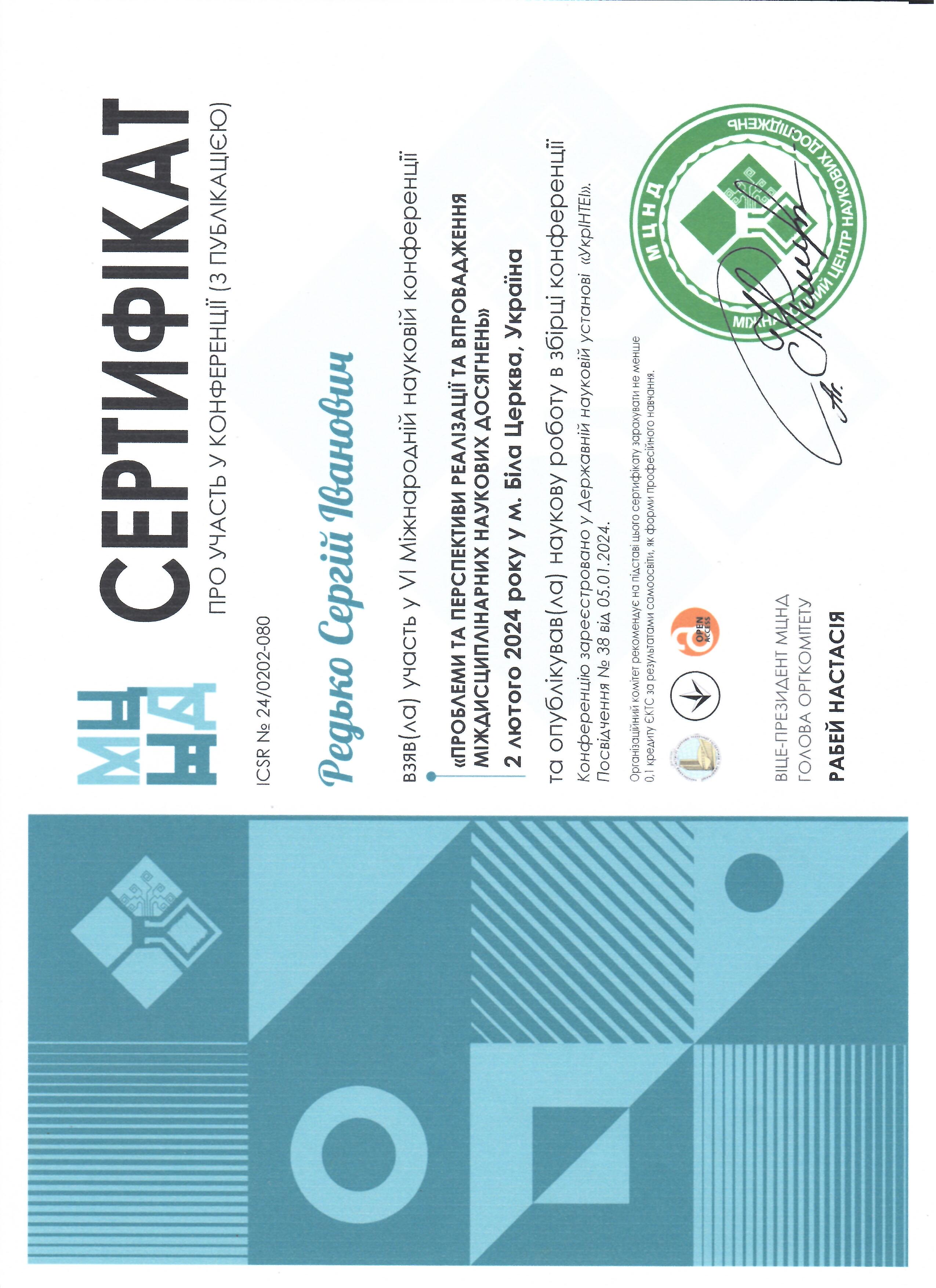| 1183 | Факультет педагогічної освіти | Кафедра освітології та психолого-педагогічних наук | 0.07 | 1 | 2025 | https://www.researchgate.net/profile/Sergij-Redko |