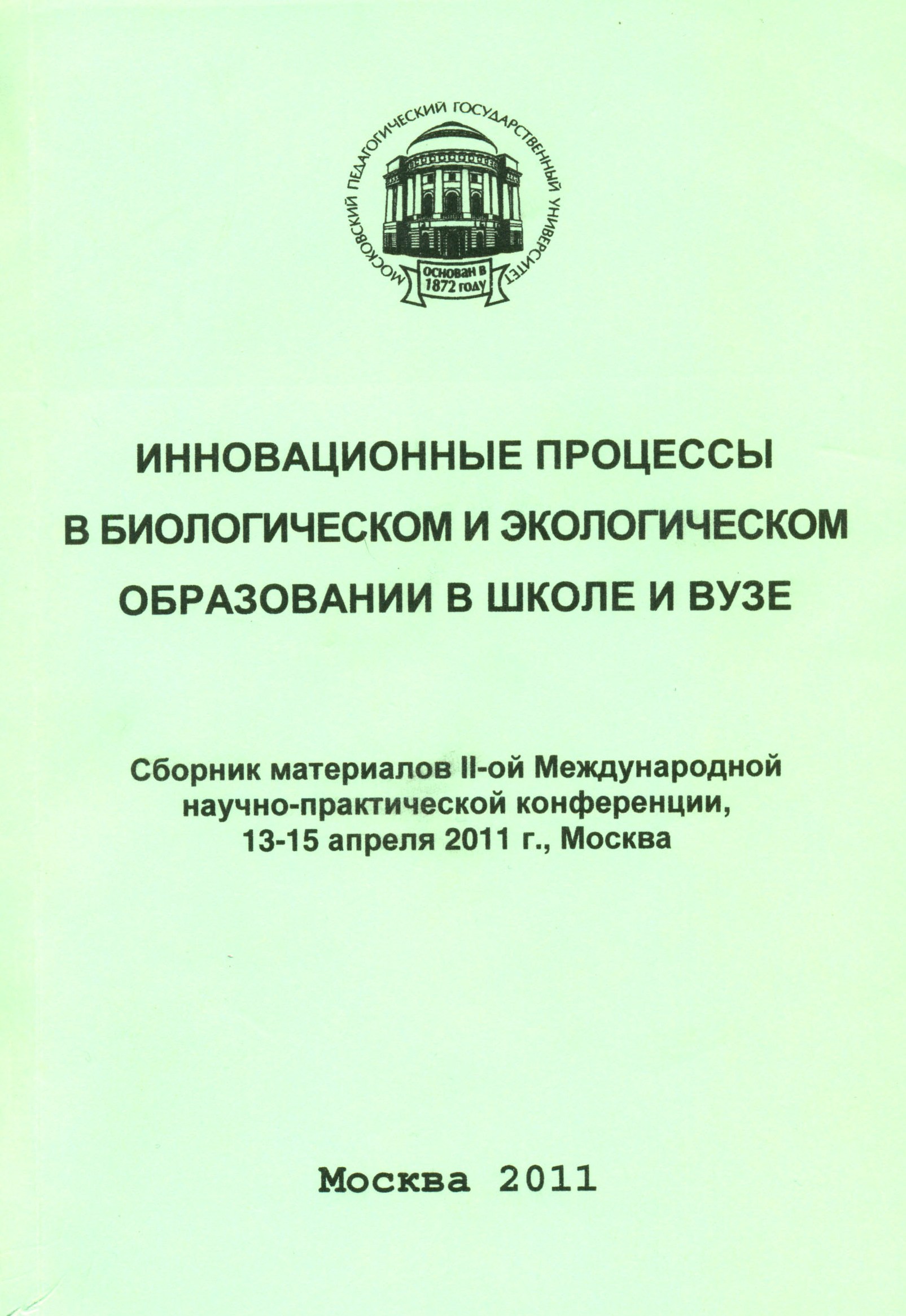 | 1478 | II Международная научно-прктическая конференция «Инновационные процессы в биологическом и экологическом образовании в школе и ВУЗе» | Формирование здоровьесохраняющего поведения студенческой молодёжи как один из аспектов образования в высших учебных заведениях | Московский педагогический государственный университет |