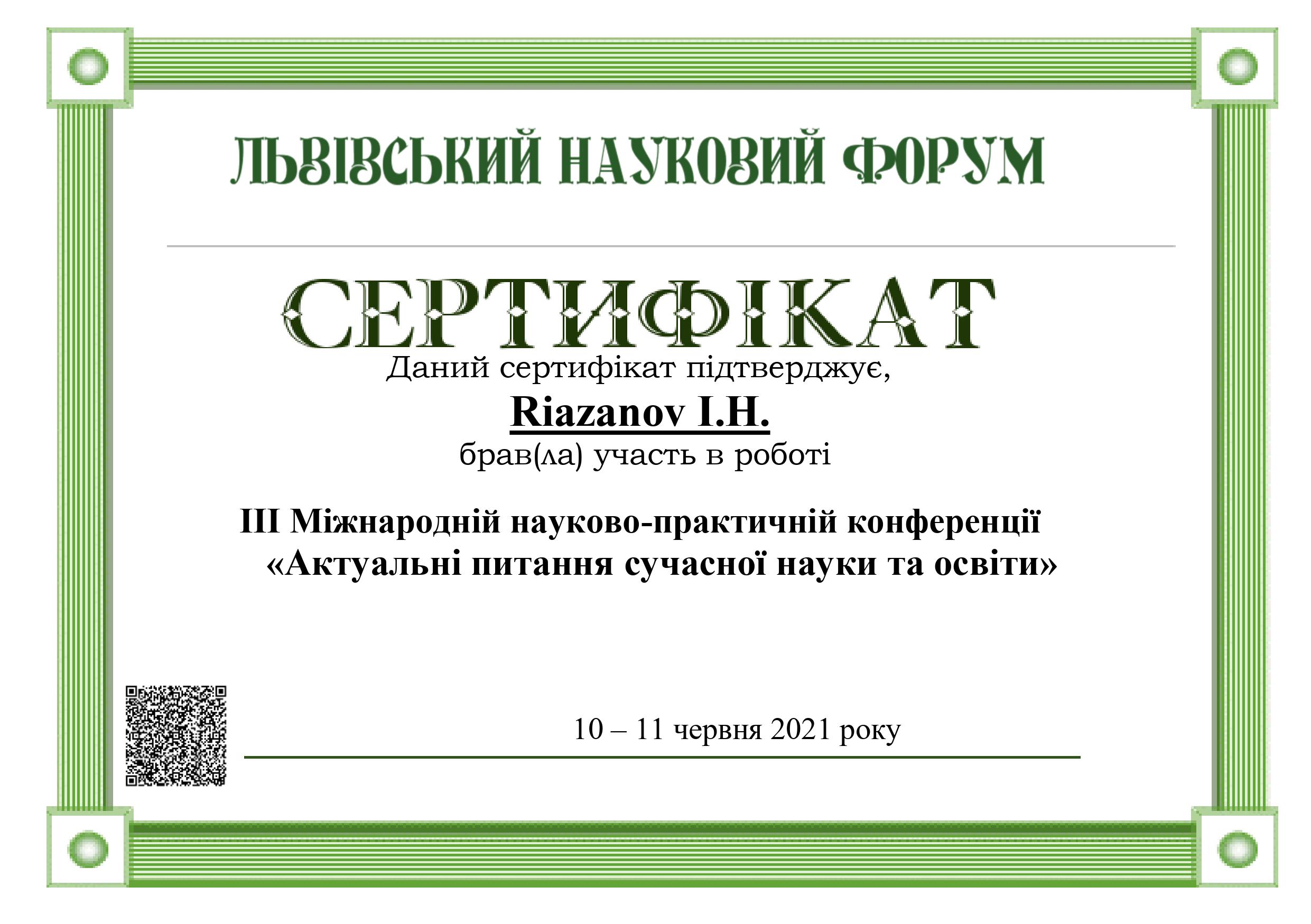 Сертифікати:
