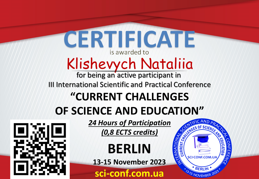 | ID | Назва | Тема доповіді | Місце проведення | Документ, що засвідчує | Дата проведення |