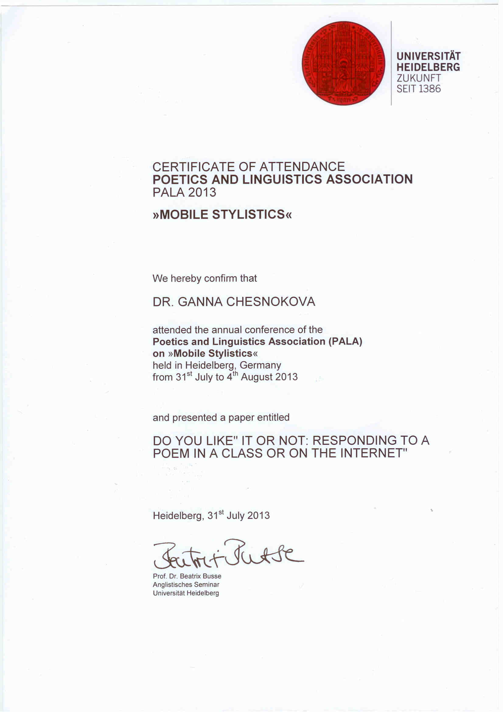 | 34 | The Sound of Meaning, and the Meaning of Sound. Phonetic Iconicity in Literature | Покликання | 2025 | 2025 | Ludwig-Maximilians-University of Munich (Germany) |