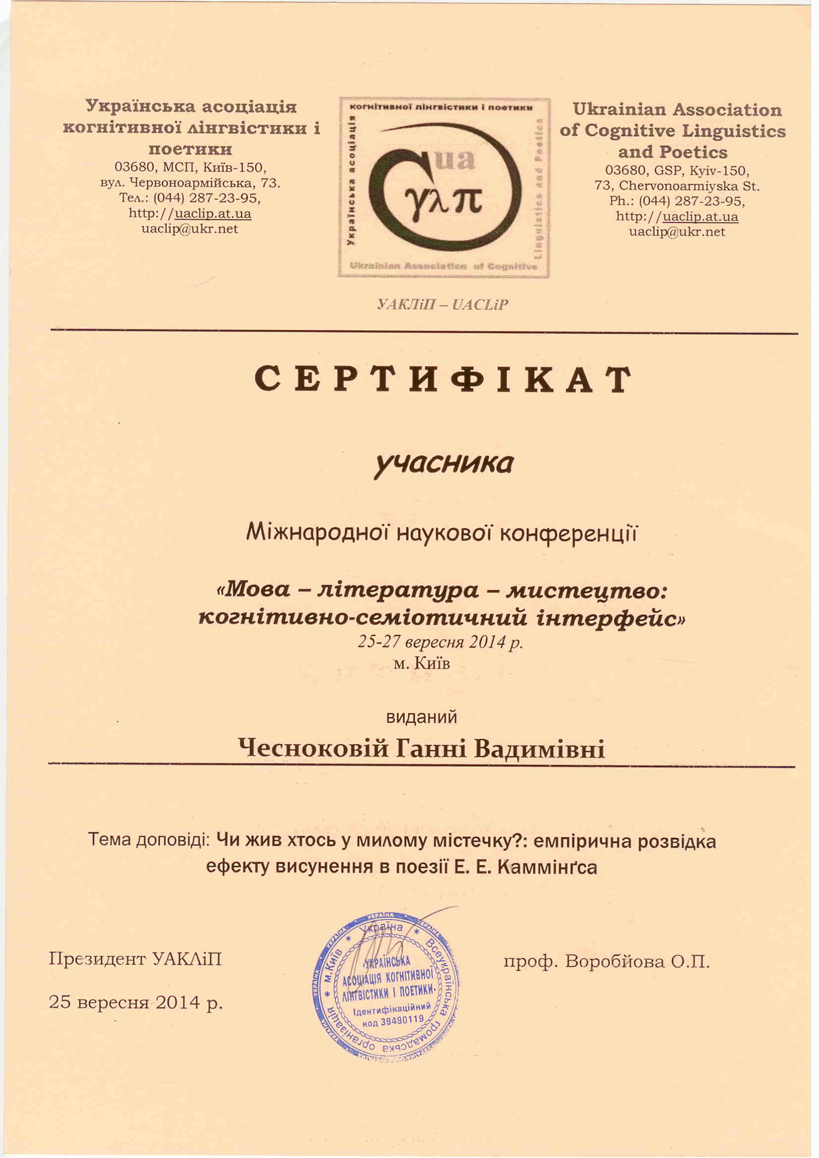 | 14 | Факультет романо-германської філології | Кафедра лінгвістики та перекладу | 477.9 | 8 | 2025 | https://www.researchgate.net/profile/Anna_Chesnokova2 |