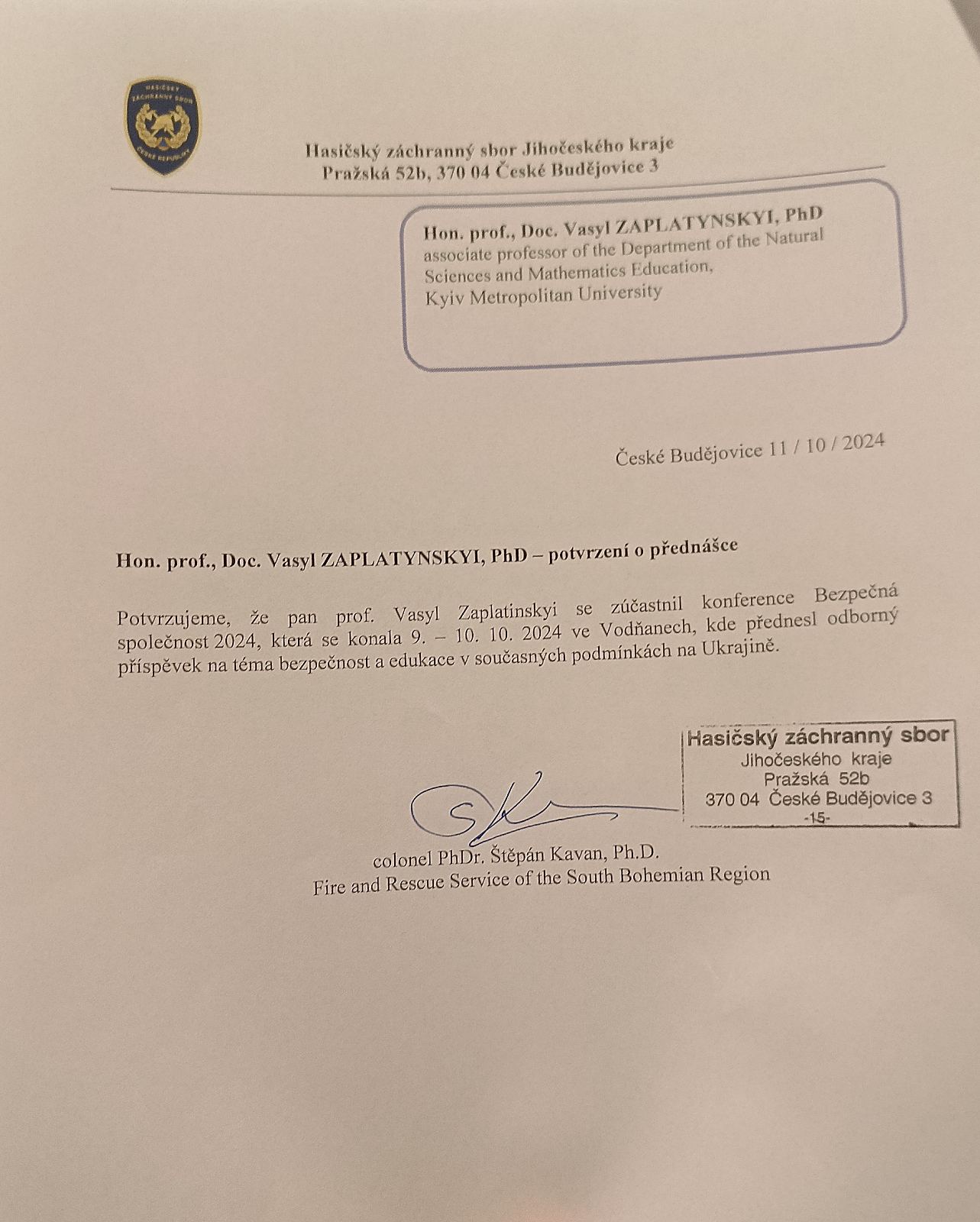 | 10758 | BEZPEČNÁ SPOLEČNOST 2024 | Bezpecnost a edukace v soucasnych podminkach ns Ukrajine | Vodnany, Чеська республіка |