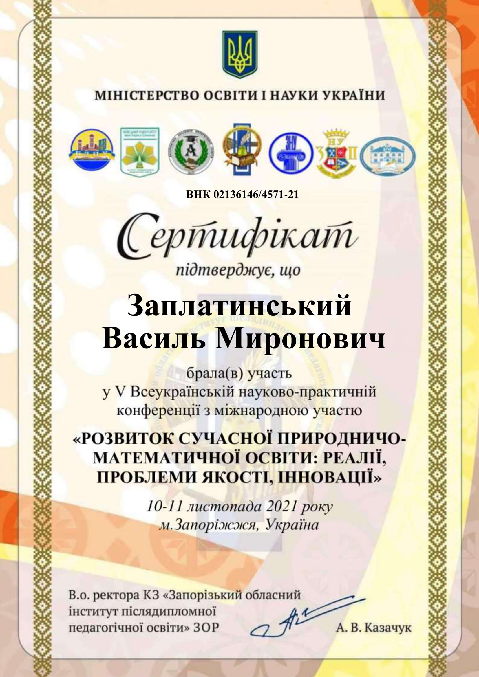 | 1076 | Інститут післядипломної освіти | Кафедра природничо-математичної освіти та технологій | 32 | 2 | 2024 | https://www.researchgate.net/profile/Vasyl-Zaplatynskyi |
