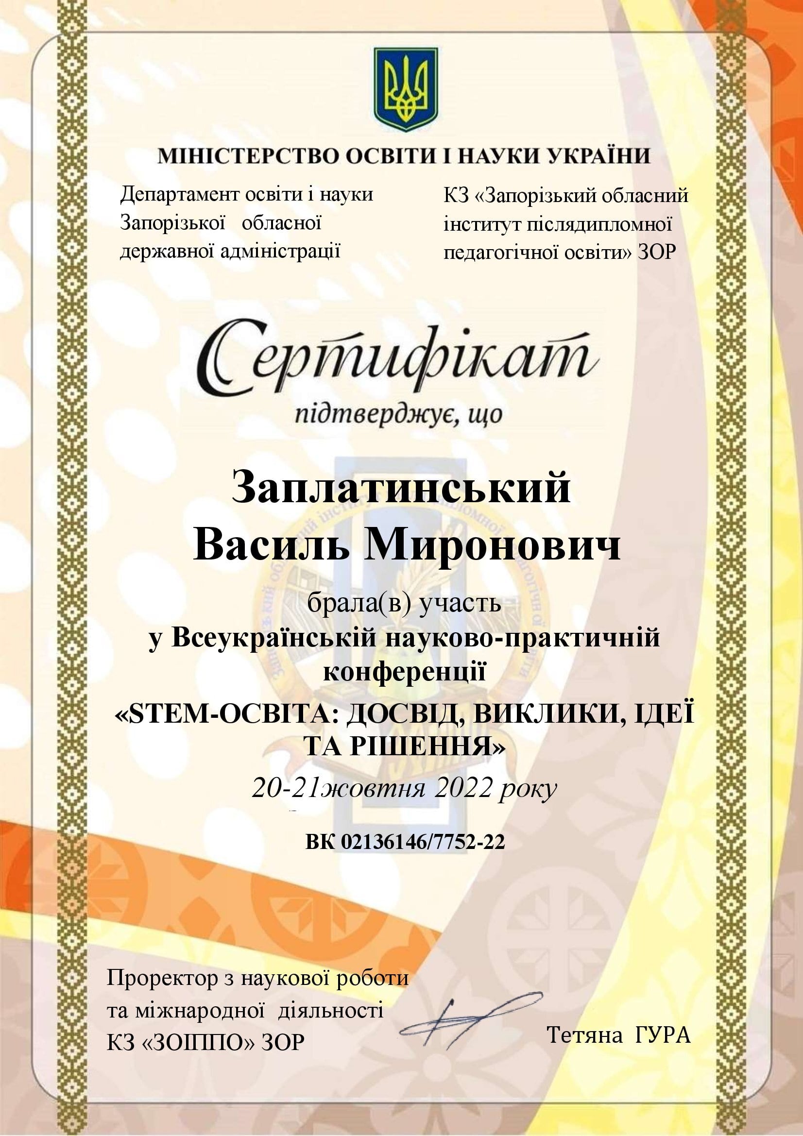 | 837 | Інститут післядипломної освіти | Кафедра природничо-математичної освіти та технологій | 17.7 | 1 | 2022 | https://www.researchgate.net/profile/Vasyl-Zaplatynskyi |