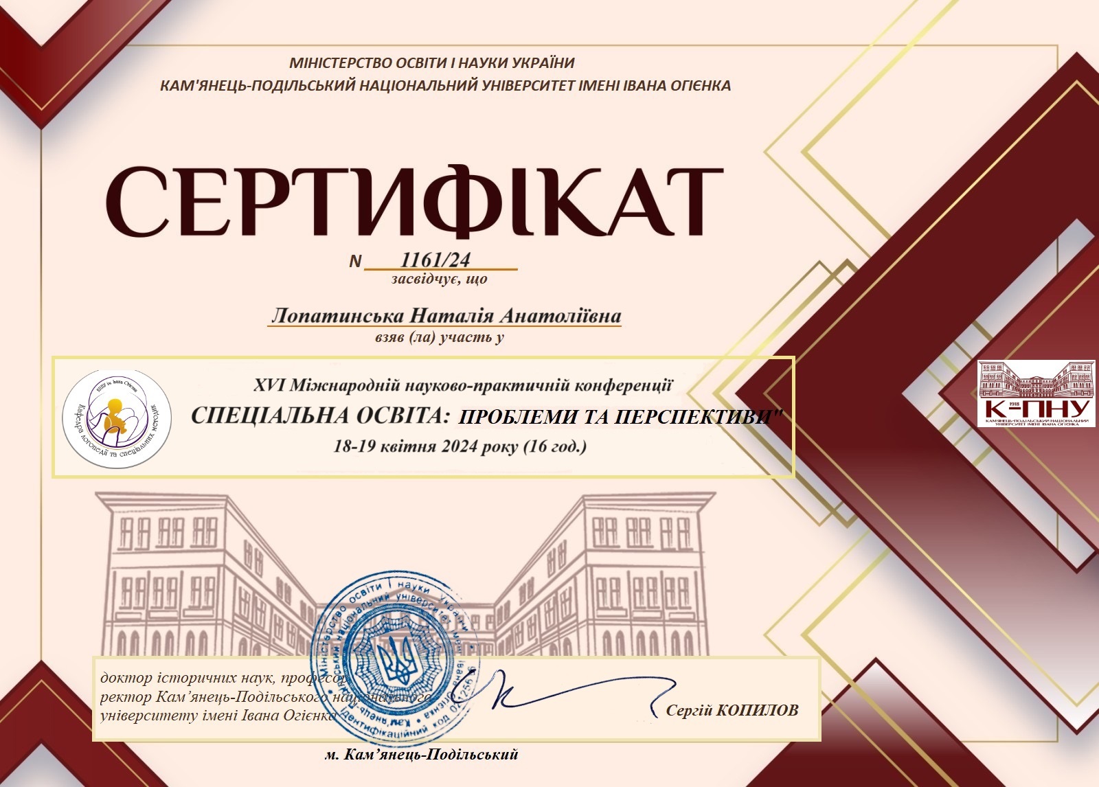 | 10612 | XVІ Міжнародна науково-практична конференція "Спеціальна освіта: проблеми та перспективи" | Подолання моторних дисфункцій у дітей раннього віку засобами нейростимуляційних технологій | Камянець-Подільський національний університет імені Івана Огієнка |