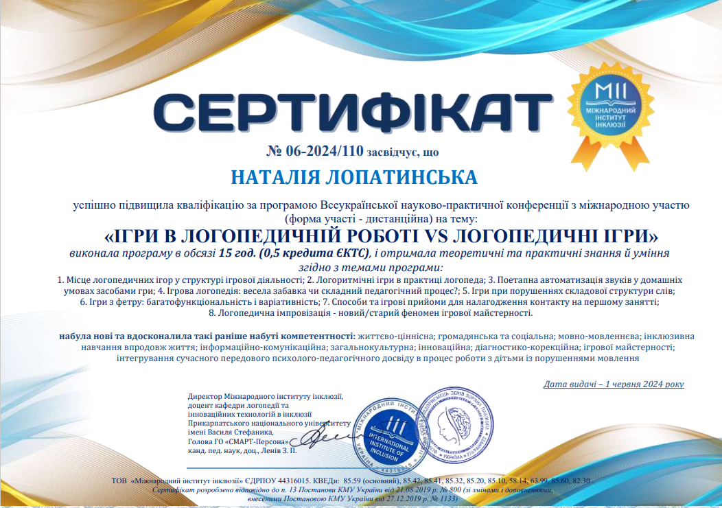 | 10614 | ІГРИ В ЛОГОПЕДИЧНІЙ РОБОТІ VS ЛОГОПЕДИЧНІ ІГРИ | участь | Івано-Франківськ |