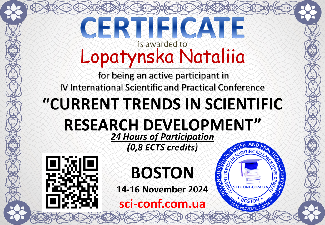 III | V Всеукраїнський конкурс наукових робіт для студентської молоді «Здорова дитина – здорова нація» | Всеукраїнський рівень | - | 2024 |