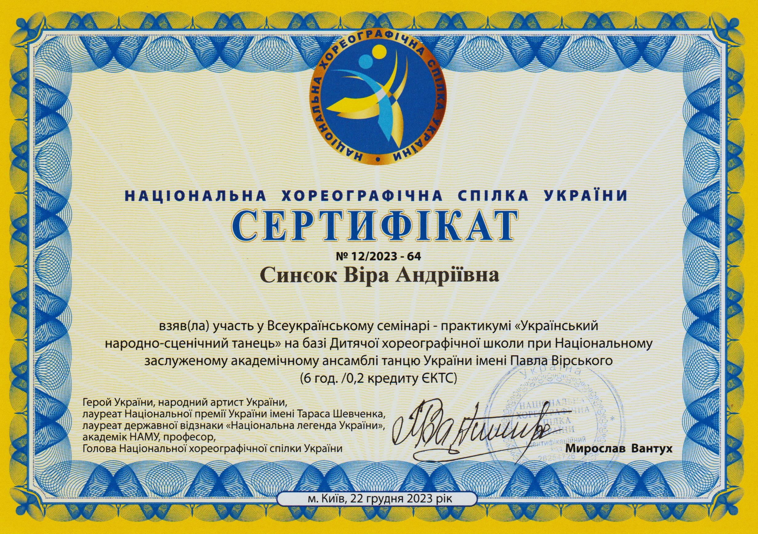 | 11023 | Всеукраїнський семінар-практикум "Український народно-сценічний танець" на базі Студії по підготовці акторських кадрів при Національному заслуженому академічному ансамблі танцю України імені Павла Вірського | "Український народно-сценічний танець" | Київ |