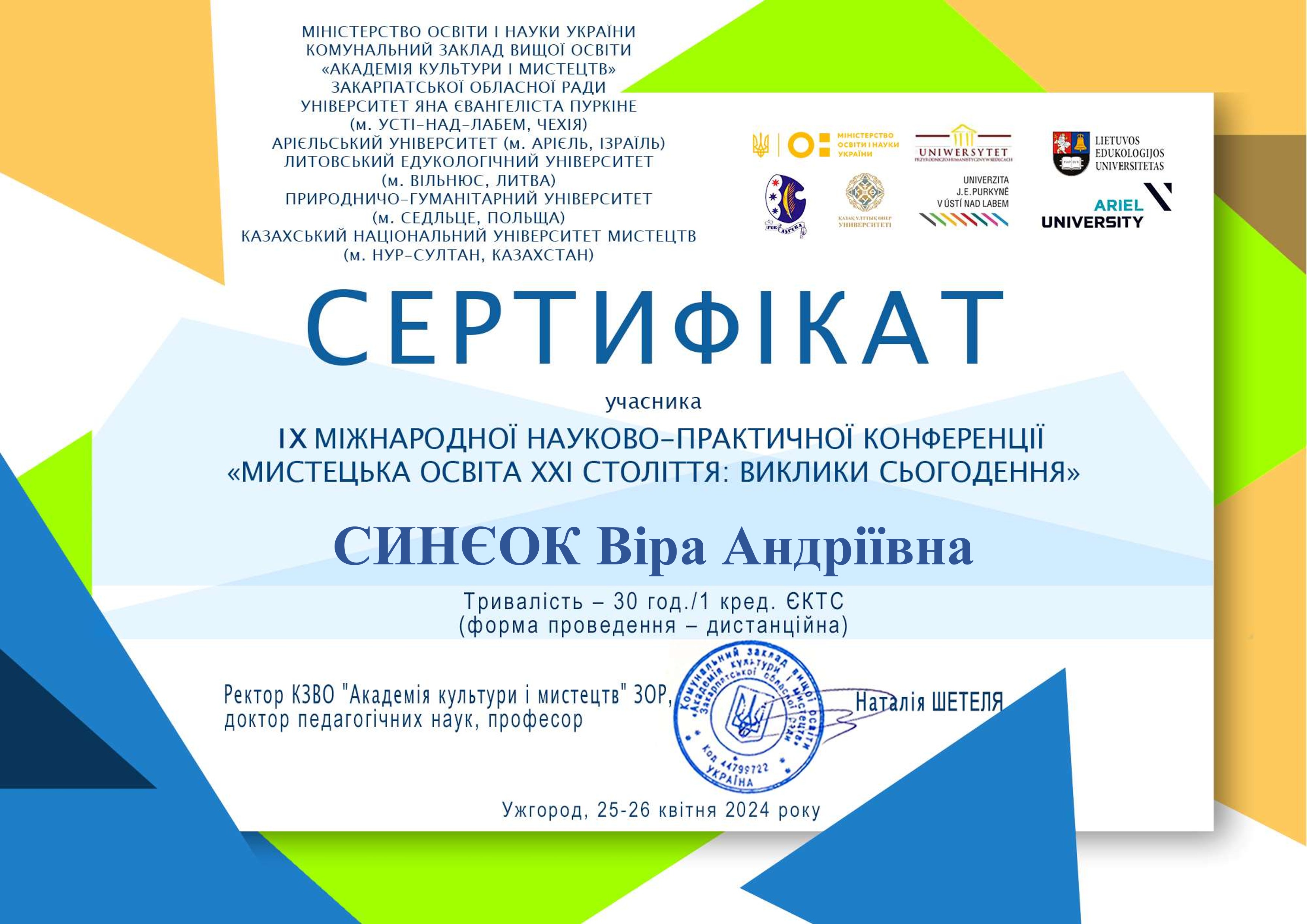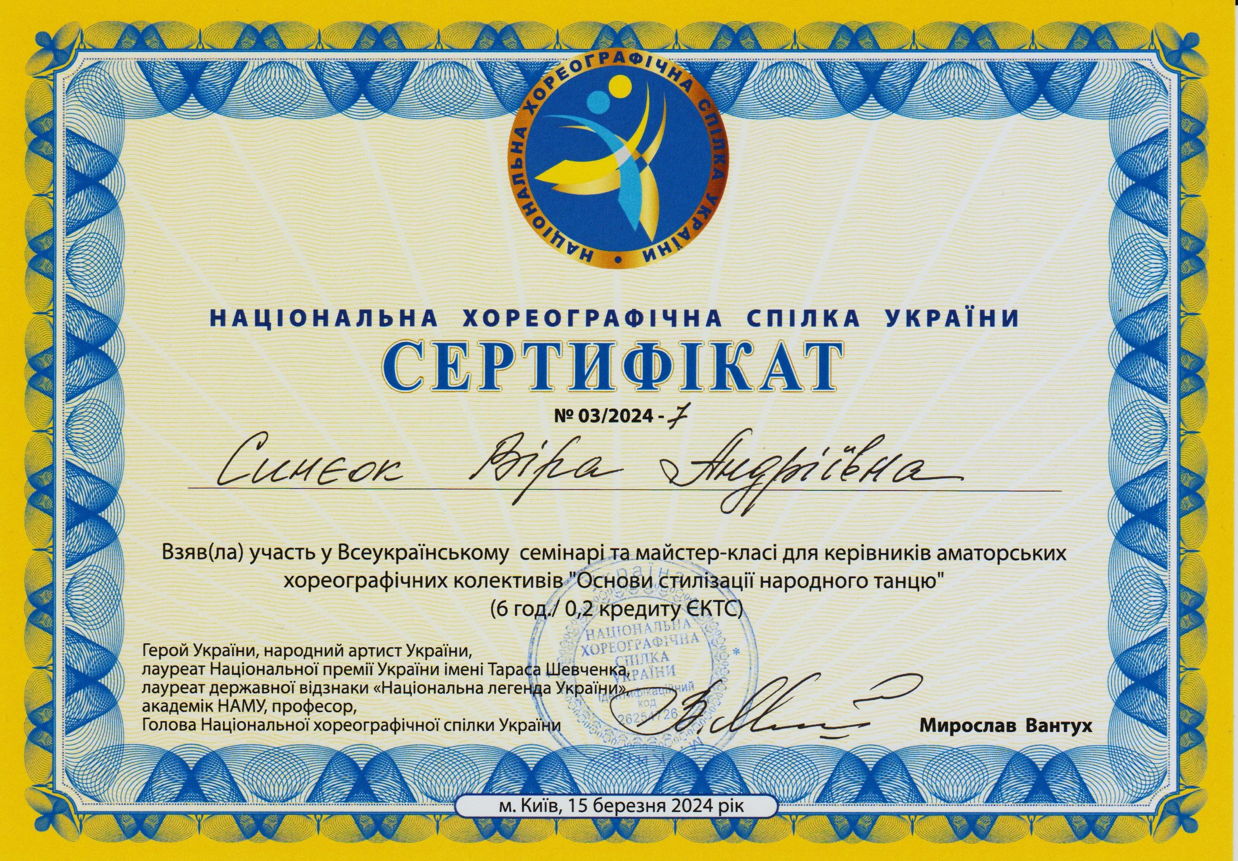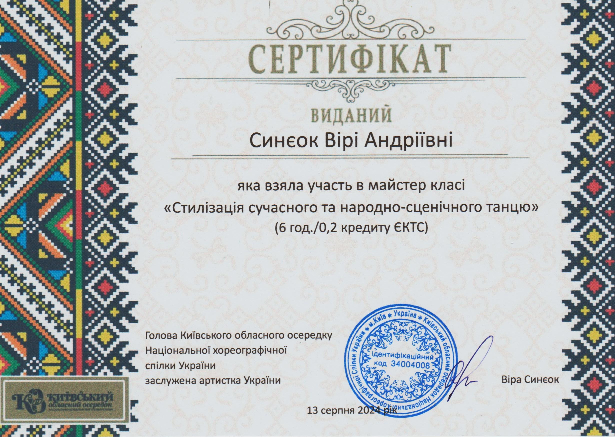| 663 | Факультет музичного мистецтва і хореографії | Кафедра хореографії | Балетмейстер-постановник хореографічного оформлення музичних номерів | ІІ Всеукраїнський вокальний фестиваль-конкурс «Prodis vocal fest» | Україна, м.Київ | 2024 | Синєок__.pdf |