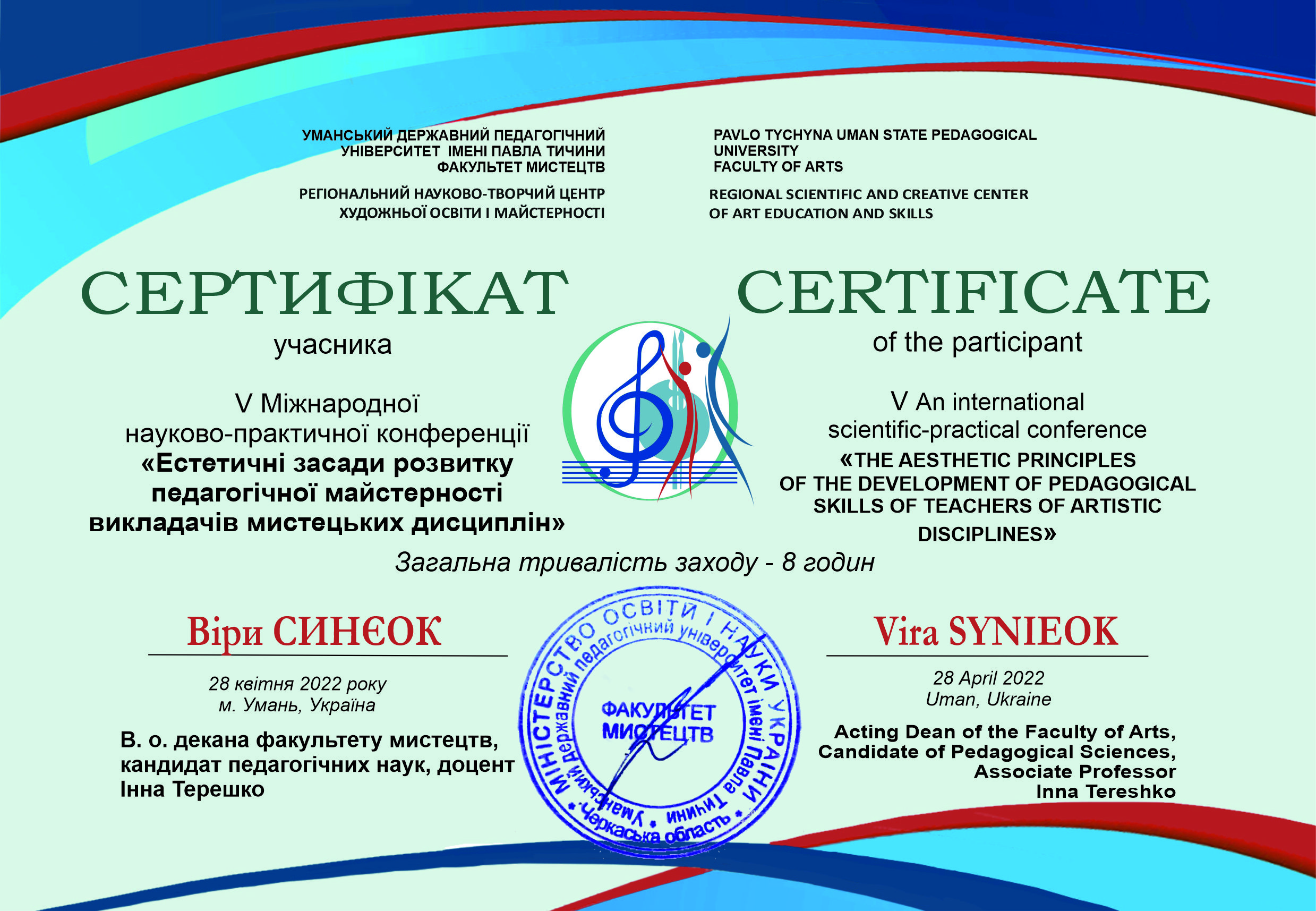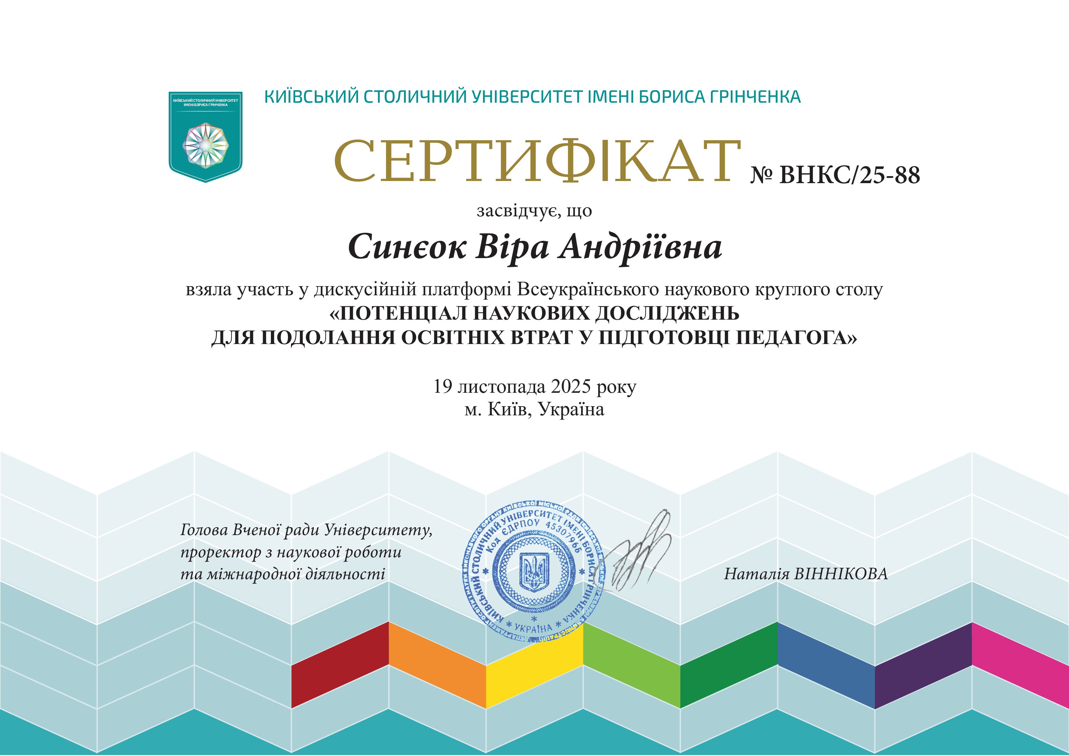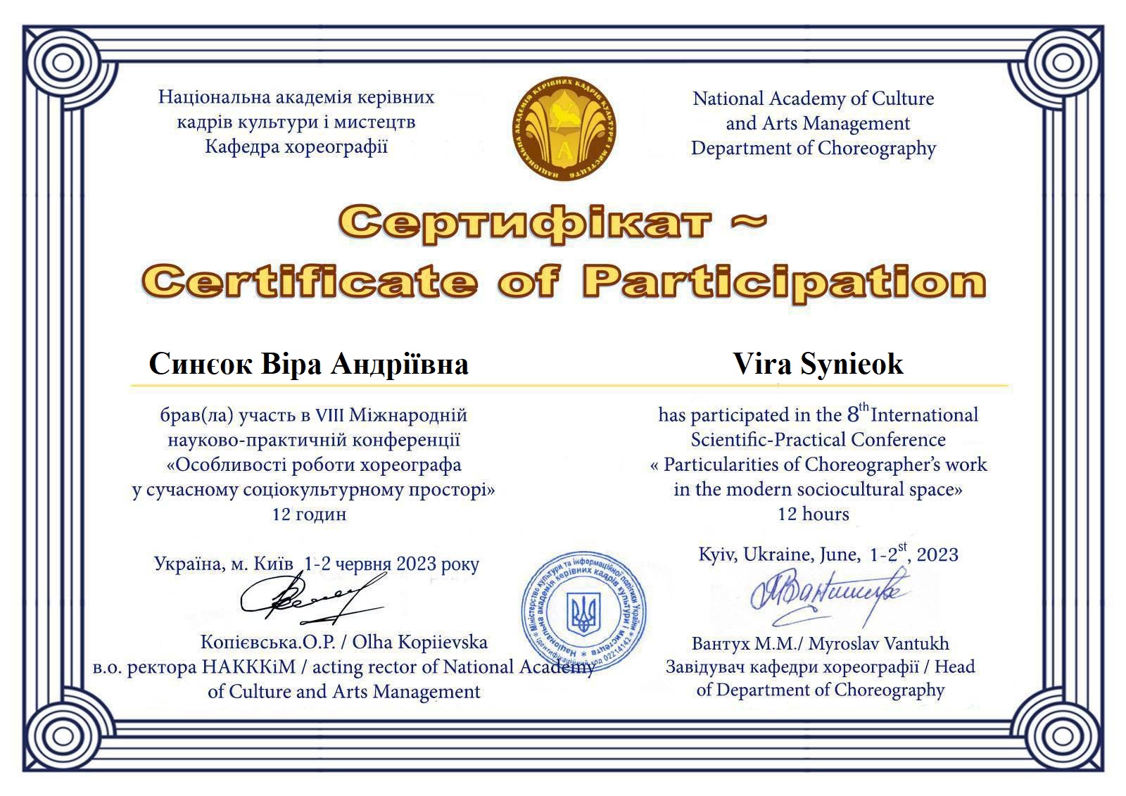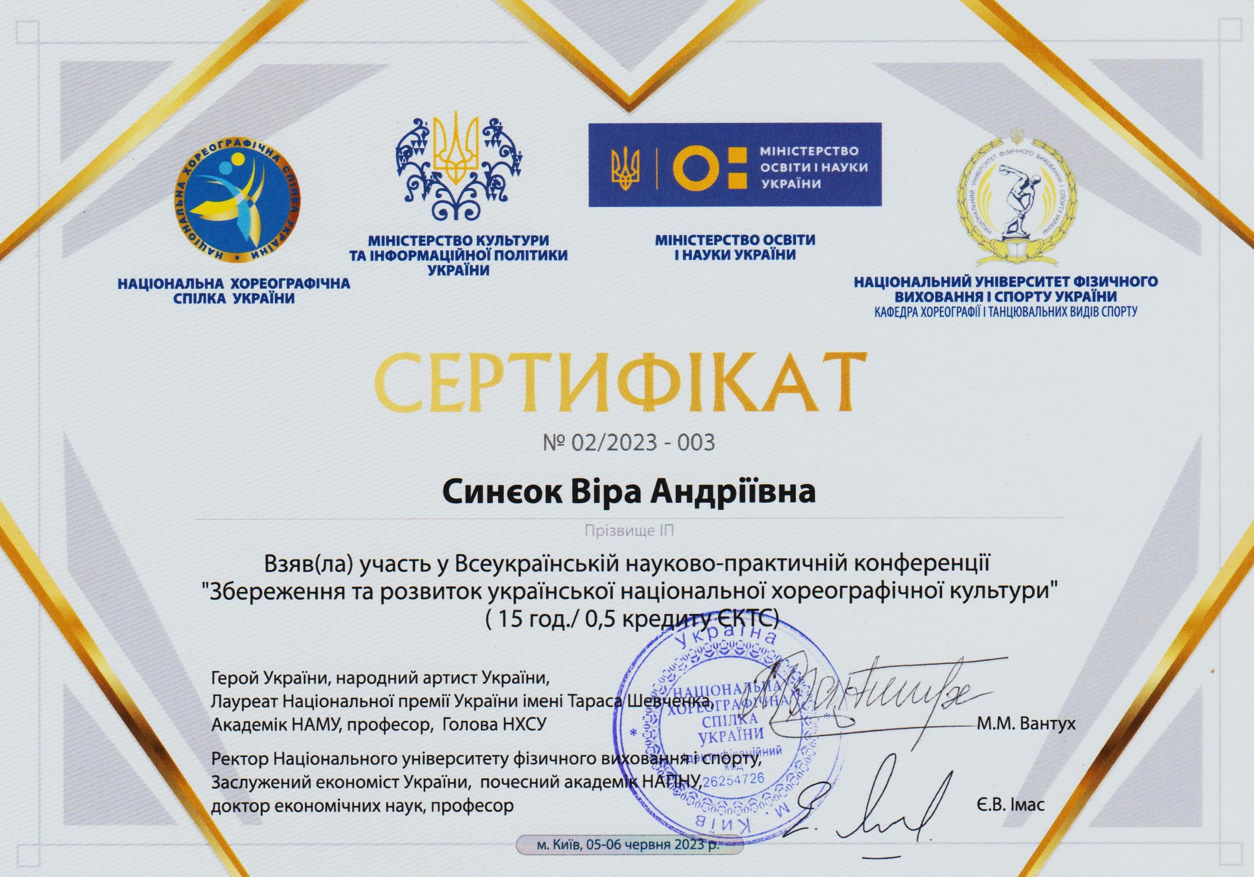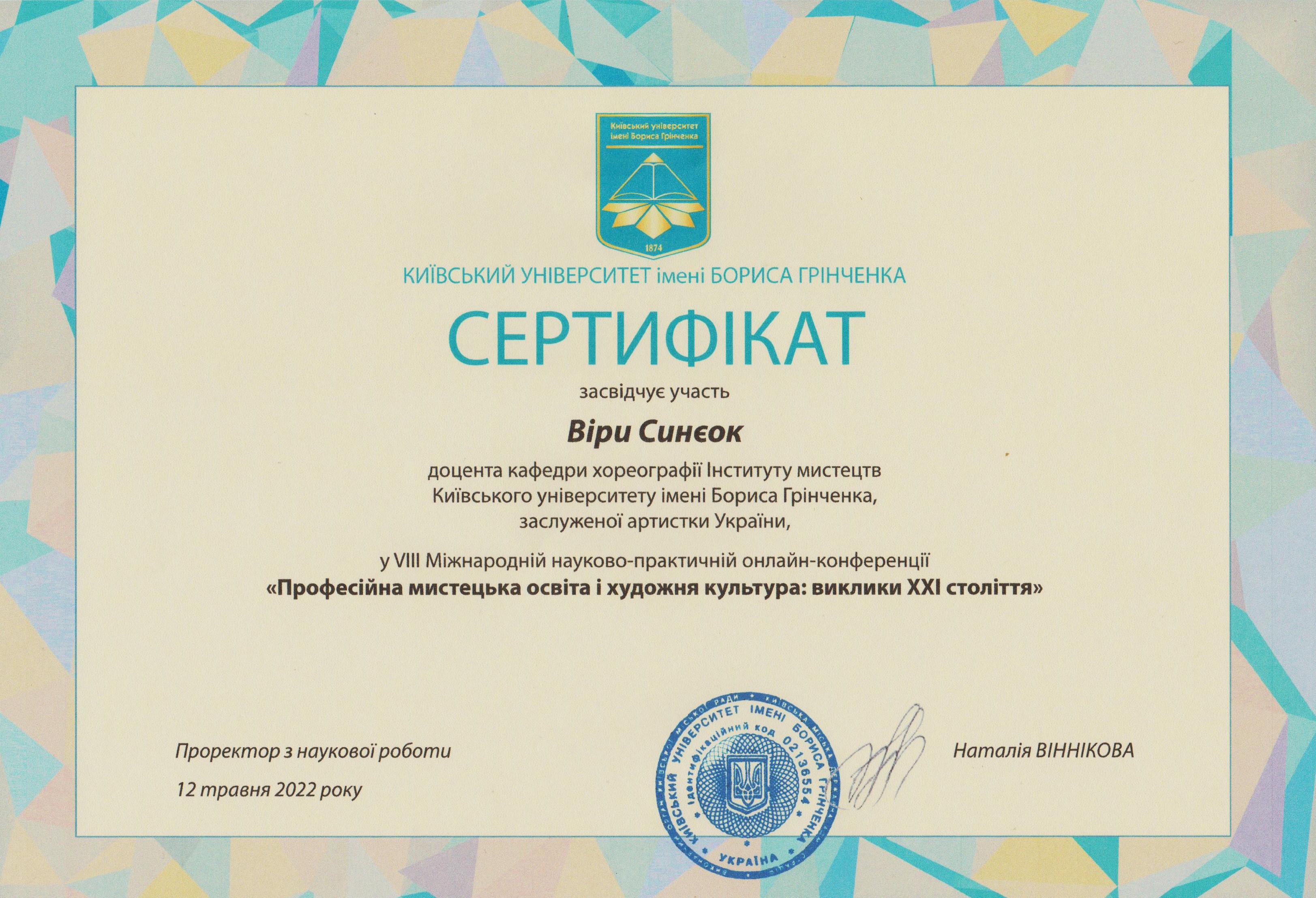 | 652 | Факультет музичного мистецтва і хореографії | Кафедра хореографії | 2 | 1 | 2025 | https://www.researchgate.net/profile/Vira-Synieok |