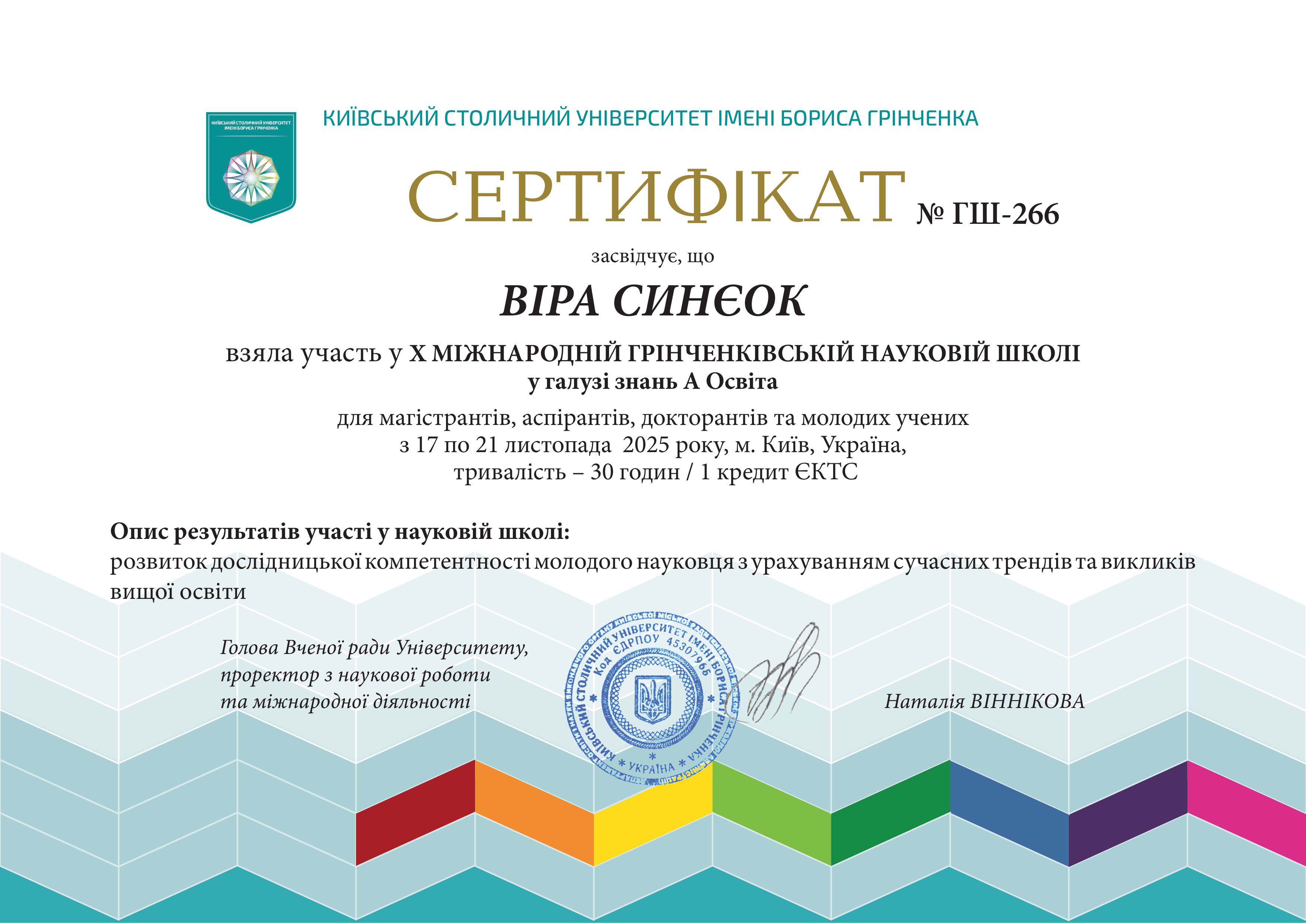 | 12569 | X Міжнародна Грінченківська наукова школа | Формування національно-культурної ідентичності студентської молоді | Київ |
