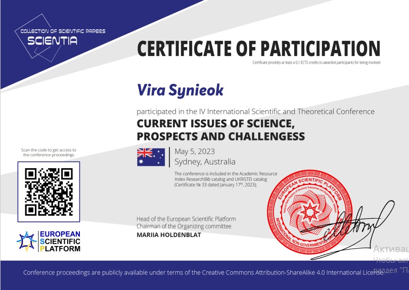| 13141 | X Міжнародна науково-теоретична конференція «Current Issues of Science, Prospects and Challenges» | Формування виконавської майстерності у вихованців хореографічного колективу | Сідней |