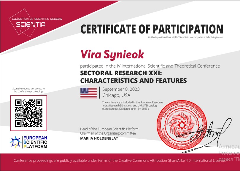 | 9478 | IV Міжнародна науково-теоретична конференція «Sectoral research XXI: characteristics and features» | Українське хореографічне мистецтво - канонічна парадигма національної самобутності | Чікаго |