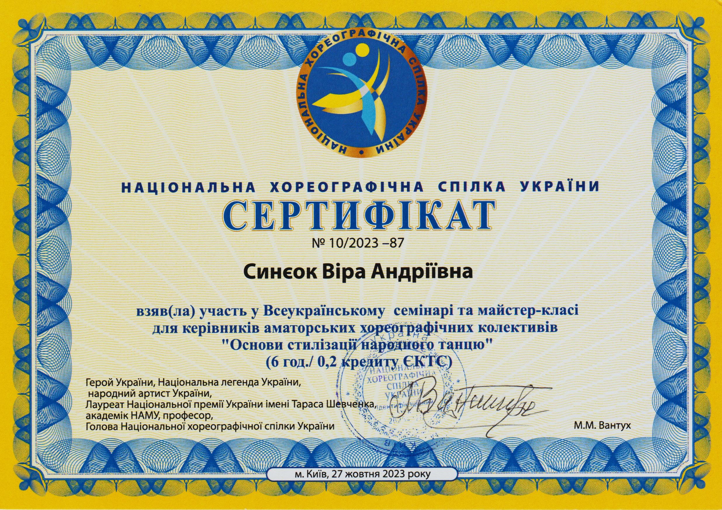 | 10321 | Всеукраїнський семінар-практикум «Особливості навчально-виховного процесу різних вікових категорій на основі народно-сценічного танцю» | Особливості виконання Азербайджанських, Молдавських та Італійських народно-сценічних танців | Київ |