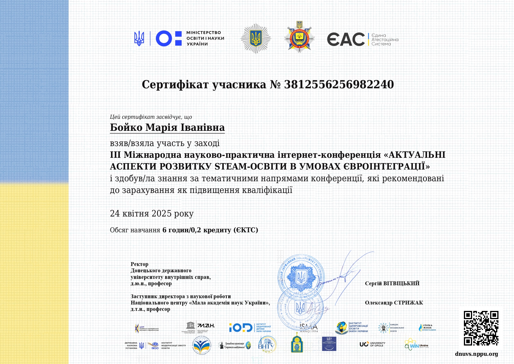 | 11768 | ІІІ Міжнародна науково-практична інтернет-конференції "Актуальні аспекти розвитку STEAM-освіти в умовах євроінтеграції" | Освіта майбутнього | Україна |