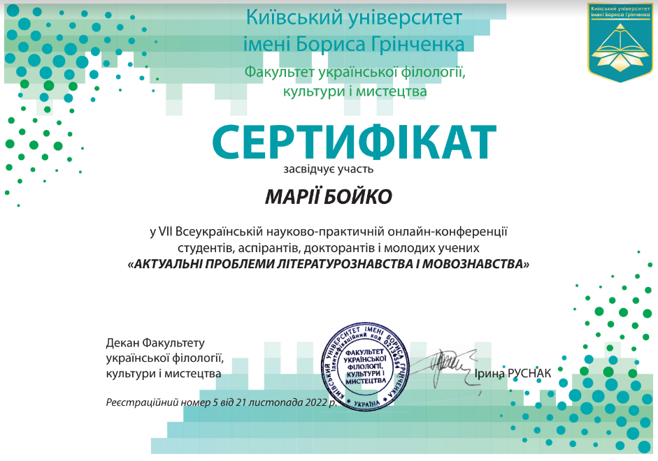 | 12806 | X Всеукраїнської науково-практичної онлайн-конференції студентів, аспірантів, докторантів і молодих учених "АКТУАЛЬНІ ПРОБЛЕМИ ЛІТЕРАТУРОЗНАВСТВА І МОВОЗНАВСТВА" | ЦИФРОВІ ЛЕКСИКОГРАФІЧНІ РЕСУРСИ У ПРОСТОРІ СУЧАСНОЇ ФІЛОЛОГІЧНОЇ НАУКИ | Київ, Київський столичний університет імені Бориса Грінченка | document.pdf | |
