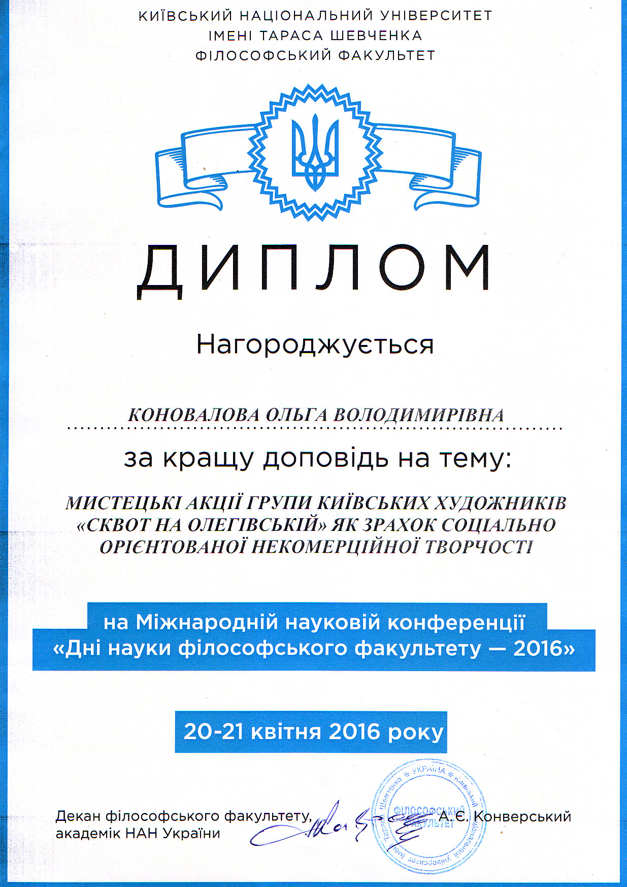| 34 | Кандидат наук | Доцент кафедри | Інститут мистецтв | 2016 | 67594 | Коновалова Ольга.PDF |
