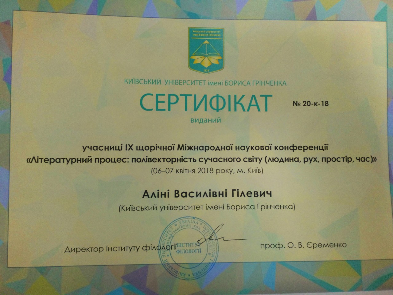 | 3977 | III Всеукраїнська науково-практична конференція "Актуальні проблеми літературознавства та мовознавства" | Hard & soft skills сучасного 教師(викладача): проблеми викладання східних мов в ХХІ столітті. | Київський університет імені Бориса Грінченка |