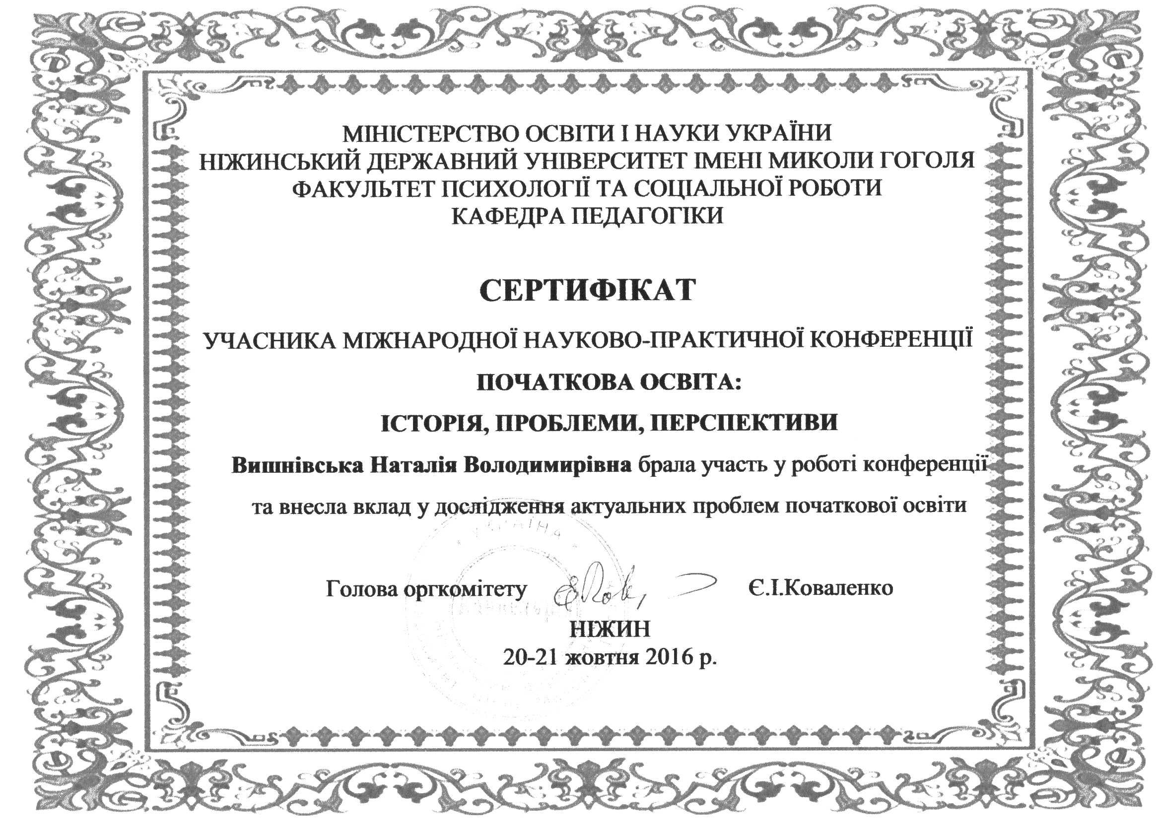 | 1240 | Міжнародна науково-практична конференція "Початкова освіта: історія, проблеми, перспективи" | Змістове забезпечення підготовки педагогів шкіл-інтернатів до виховання милосердя в учнів молодшого шкільного віку | Ніжинський державний університет імені Миколи Гоголя |