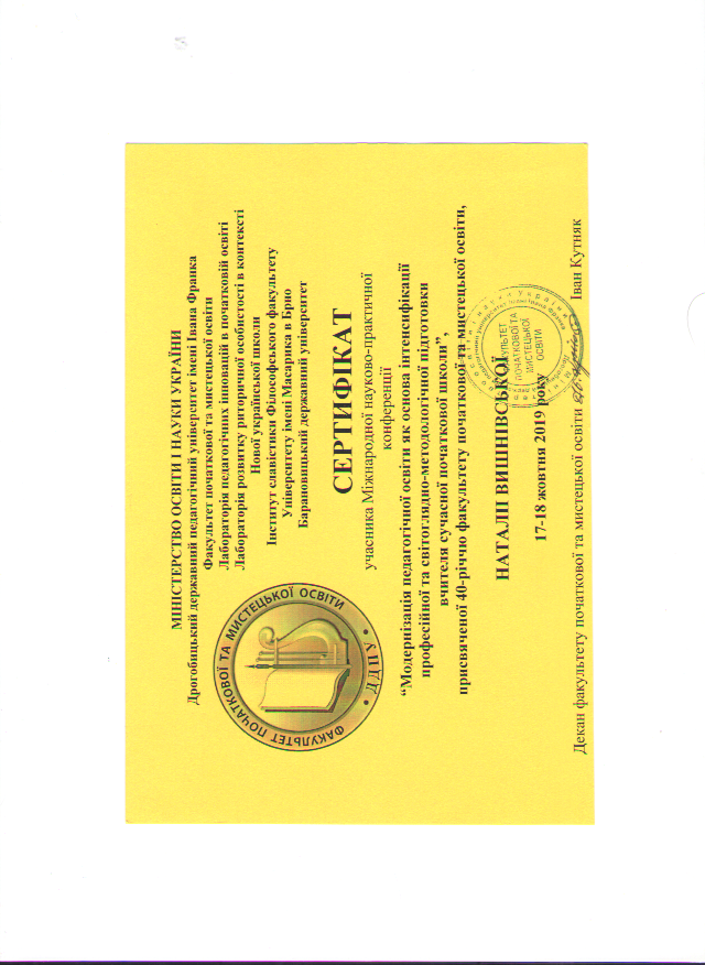 | 4951 | Міжнародна науково-практична конференція "Модернізація педагогічної освіти як основа інтенсифікації професійної та світоглядно-методологічної підготовки вчителя сучасної початкової школи" | Організація діяльності вчителів щодо формування медіаграмотності молодших школярів | Дрогобицький державний педагогічний університет імені Івана Франка |