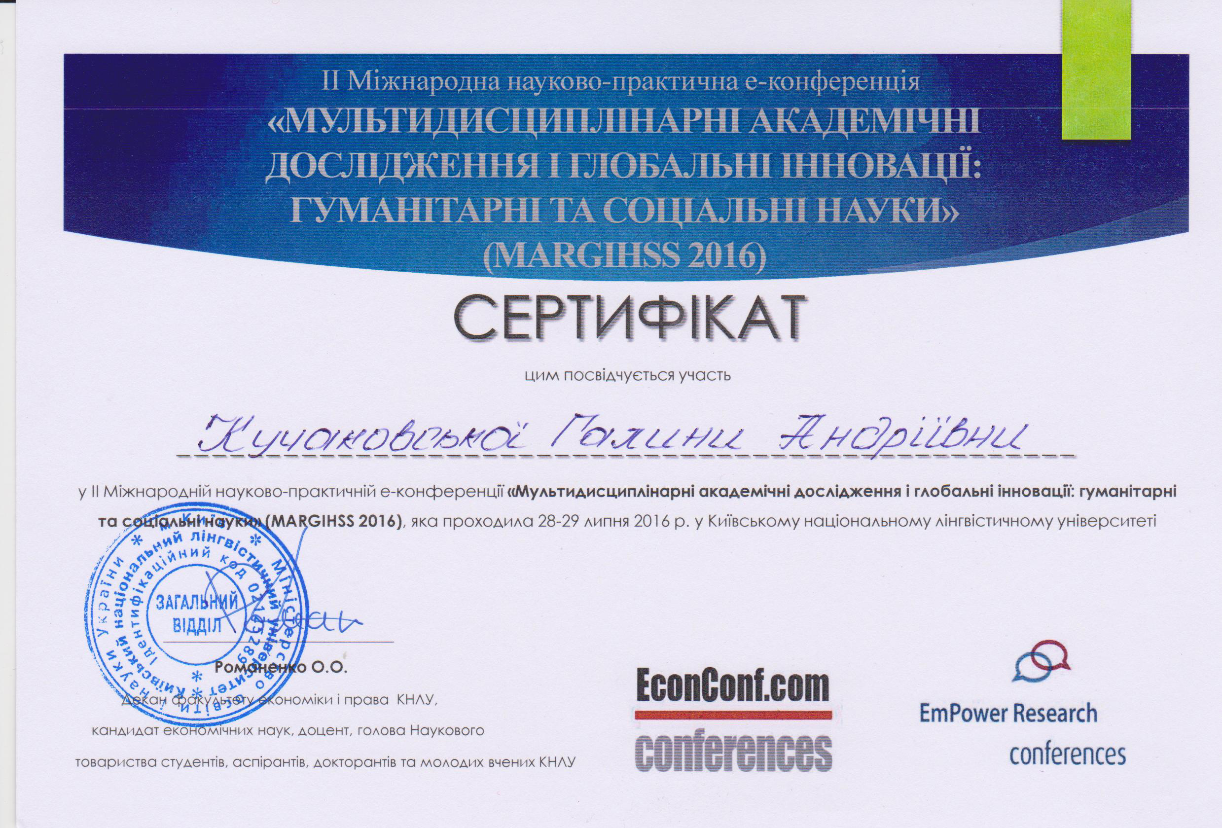 | 43 | Кучаковська Галина Андріївна | Покликання | 2025 | 2025 | Universitas Muhammadiyah Gresik (Indonesia) Rajamangala University of Technology Krungthep (Thailand) |