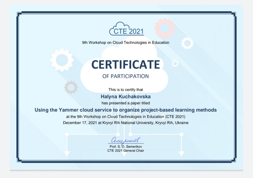 | 132 | Using the Yammer cloud service to organize project-based learning methods | https://elibrary.kubg.edu.ua/id/eprint/40775/ | 2022 |
