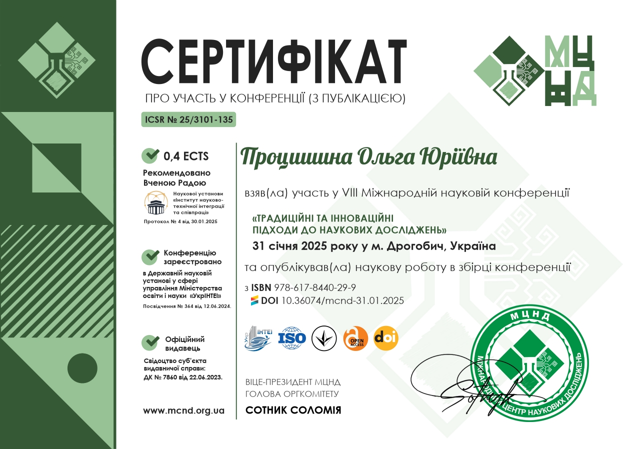 882 Факультет музичного мистецтва і хореографії Кафедра академічного та естрадного вокалу 0.8 1 2025 https://www.researchgate.net/profile/Olha_Protsyshyna