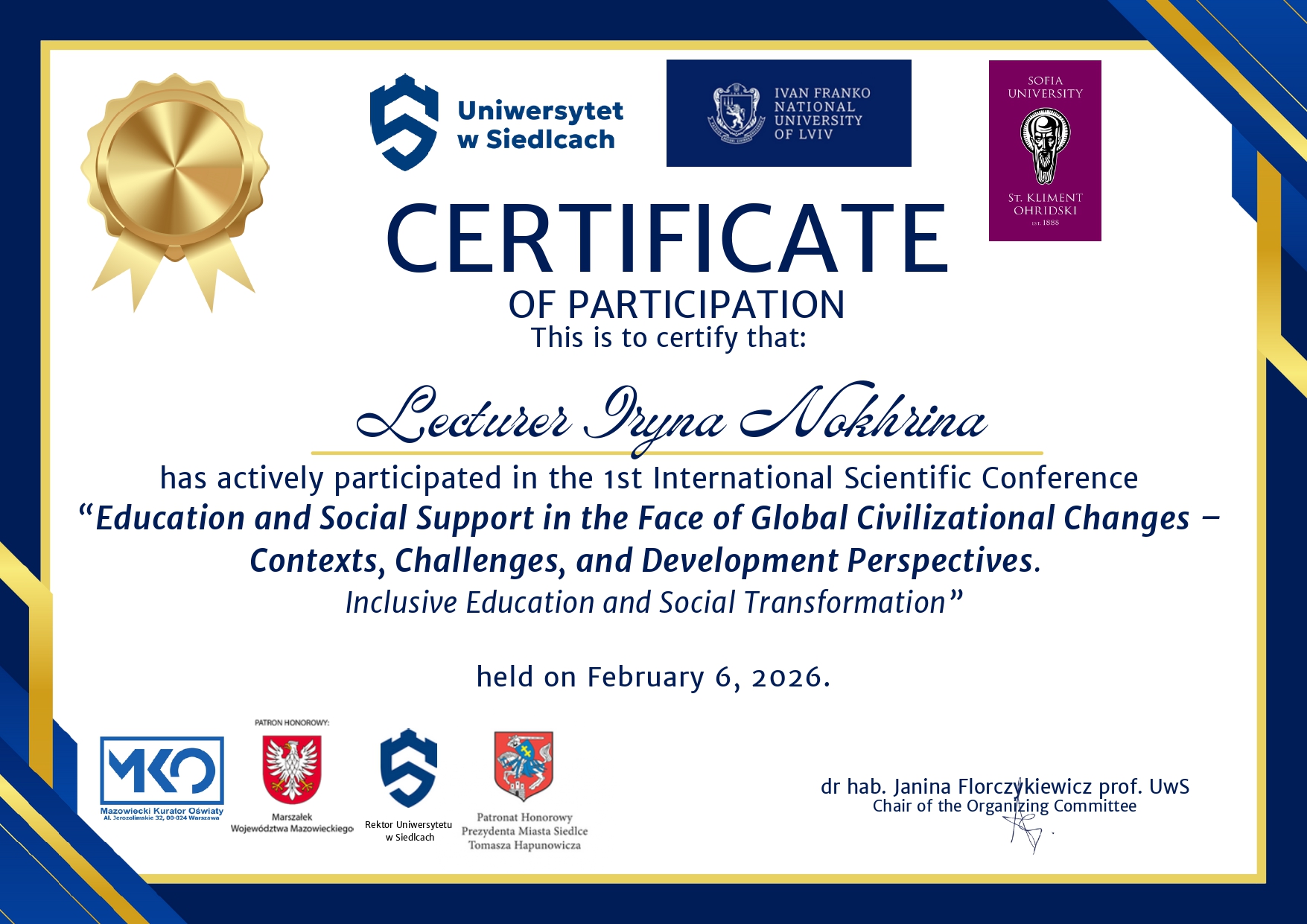 освітня програма «Соціальна педагогіка», диплом магістра з відзнакою.