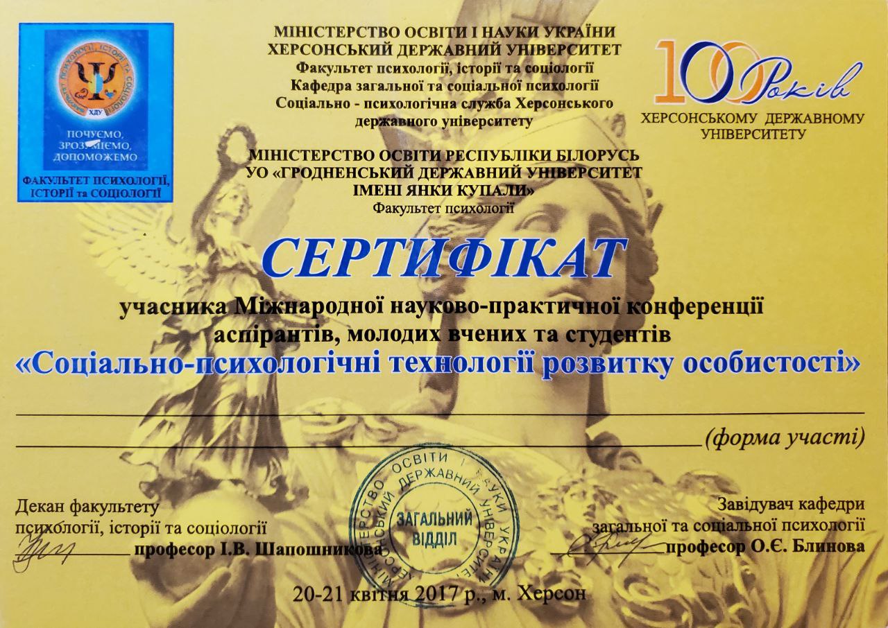 2018 р. - закінчив Херсонський державний університет (053 Психологія, бакалавр);