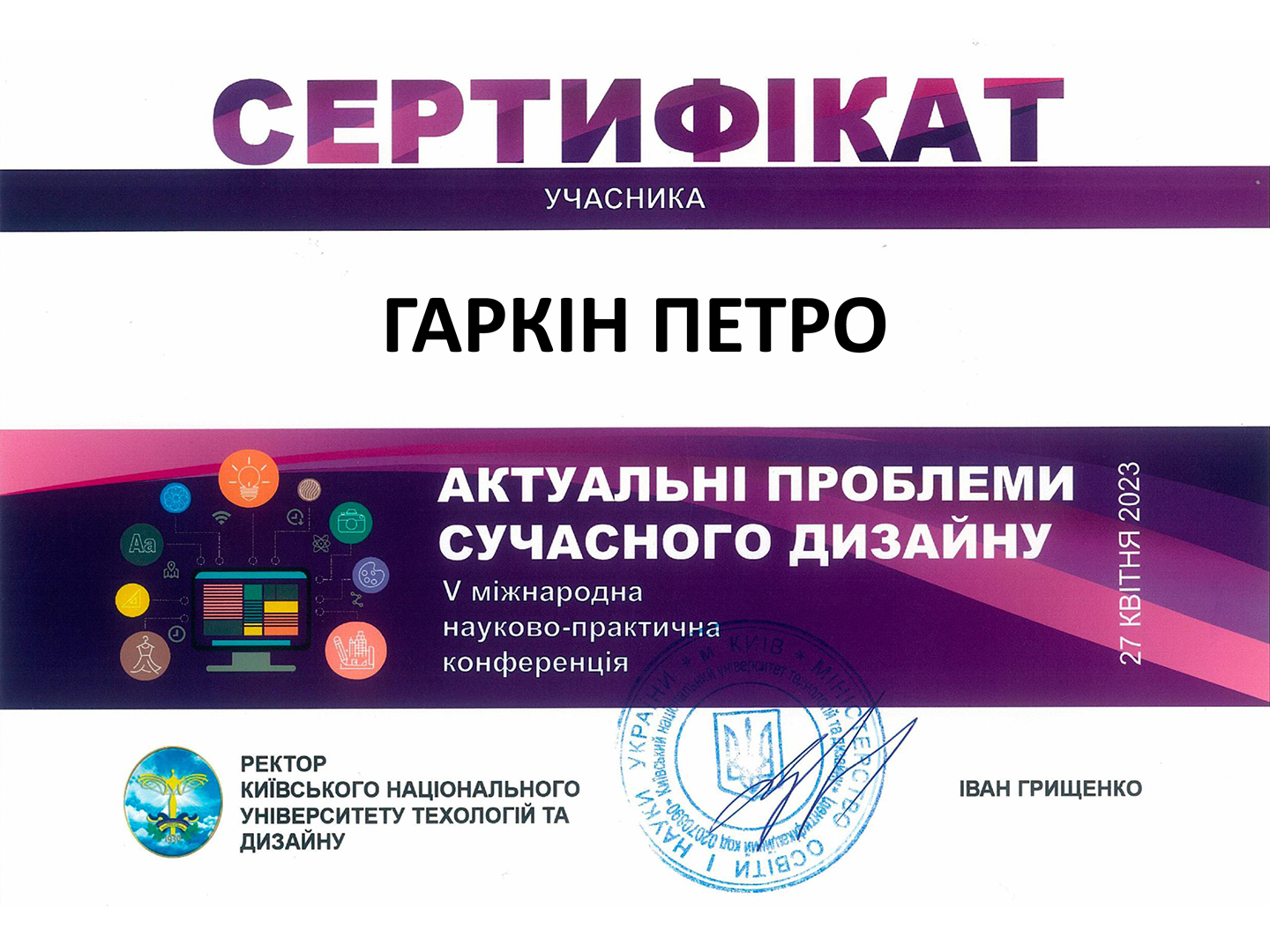 | ID | Назва | Тема доповіді | Місце проведення | Документ, що засвідчує | Дата проведення |