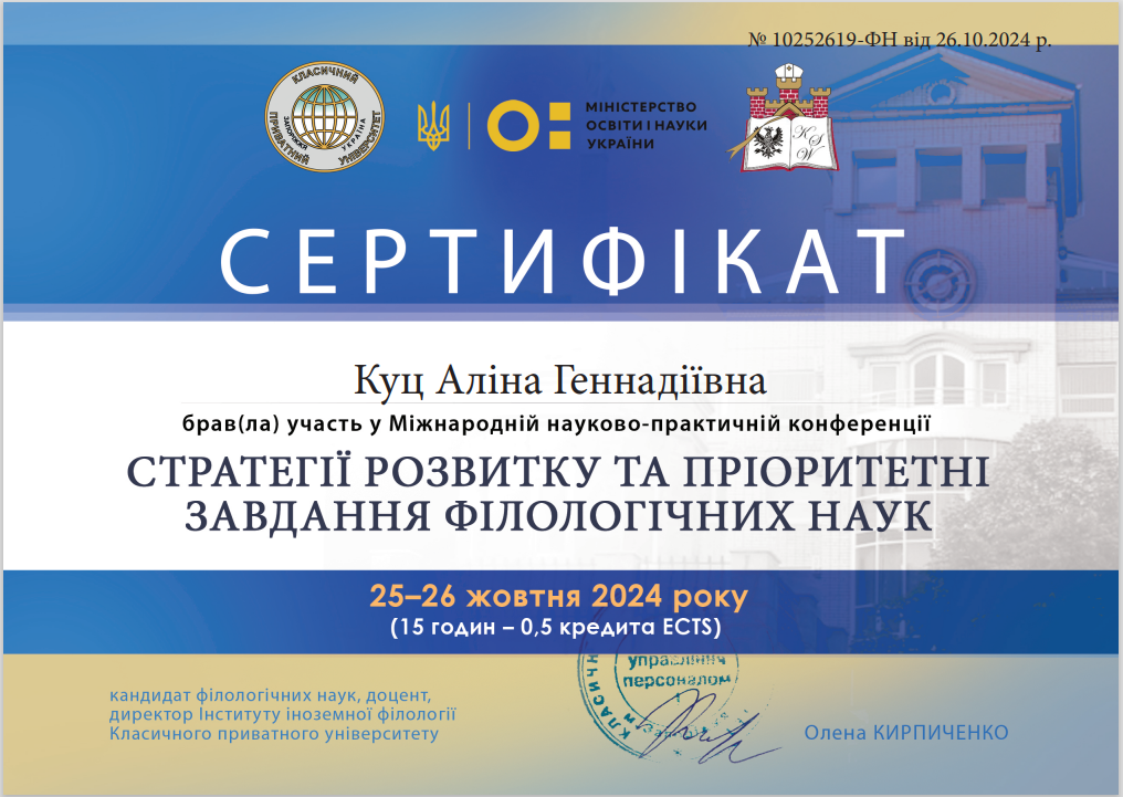 | 11182 | Наукова комунікація в цифрову епоху | Інший модуль | Certificate Kuts_.pdf | 22.11.2024 00:00 |