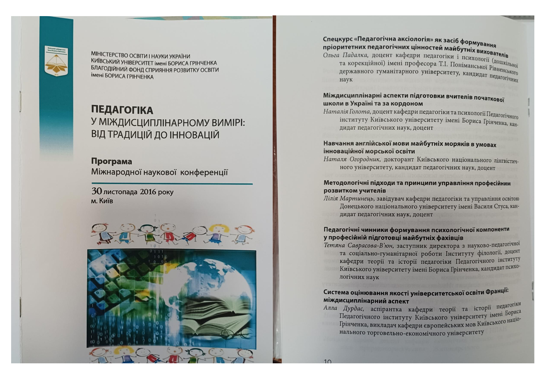 | 10139 | Педагогіка в міждисциплінарному вимірі: від традицій до інновацій | Педагогічні чинники формування психологічної компоненти у професійній підготовці майбутніх фахівців | Київ |